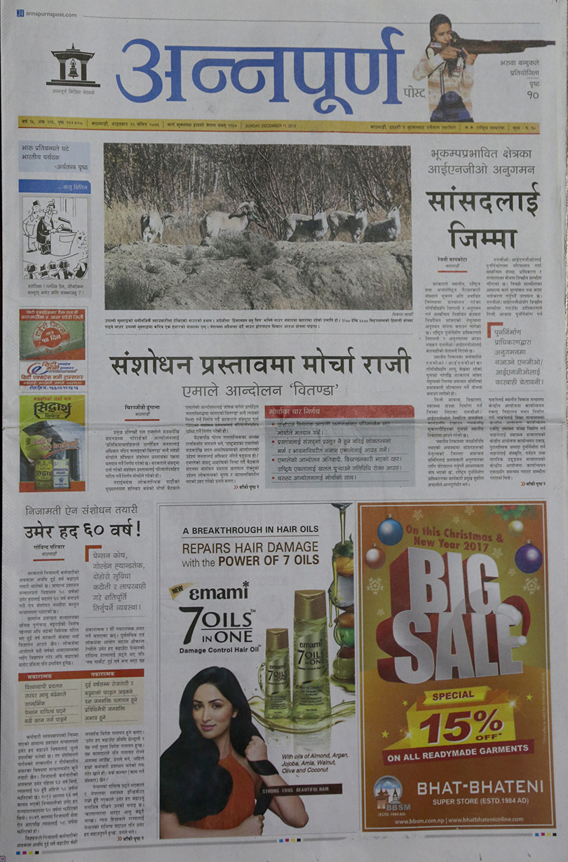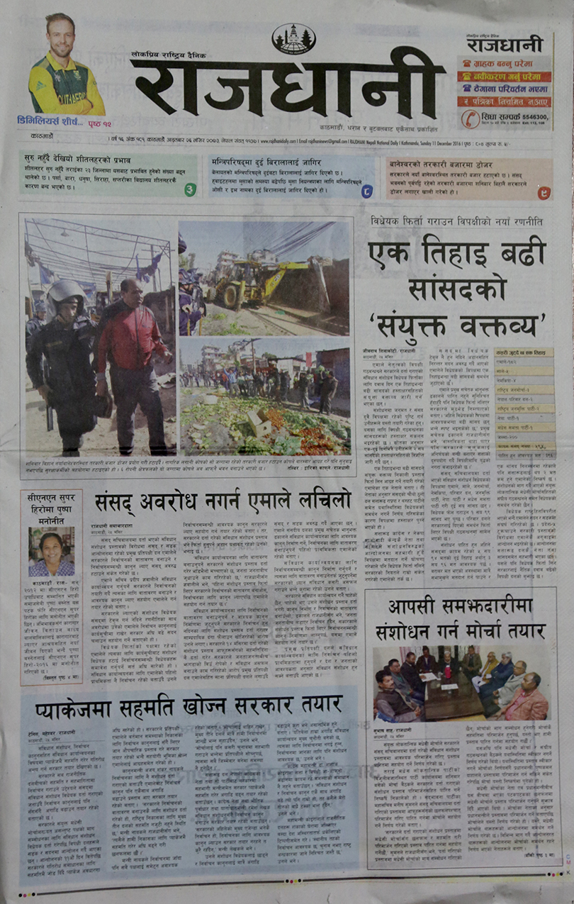 के छापिए आजका पत्रिकाका पहिलो पेजमा जस्तो तस्तै
