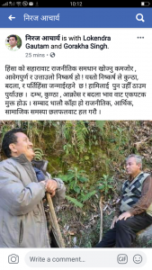 सामाजिक सञ्जालमा नेत्रविक्रम चन्द विप्लव र हालका गृहमन्त्री रामबहादुर थापा बादलको युद्धकालिन फोटो राखेर उनले वार्ताबाट समाधान थाल्न दुवै पक्षलाई आह्वान गरेका हुन् ।