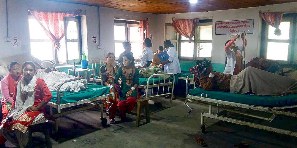 डोल्पा ः जिल्ला अस्पताल डोल्पामा बेड अभाव हुँदा बिरामीलाई भुइँमै राखेर उपचार गर्नुपरेको छ। केही दिनयता अस्पतालमा ह्वात्तै बिरामी बढेपछि भुइँमै राखेर उपचार गर्नुपरेको हो।