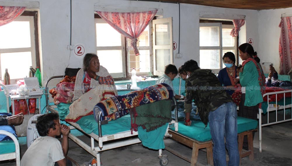 अस्पतालमा पर्याप्त बेड नहुँदा १५ जनालाई बेडमा र १० जनालाई भुइँमै राखेर उपचार गराइरहेको डाक्टर सिजन रावलले जानकारी दिनुभयो । बेड नहुँदा जिल्ला अस्पतालमा कार्यरत अस्पताल क्वाटरमा बस्दै आएका स्वास्थकर्मीको बेड ल्याएर उपचार गराइरहको उहाँले बताउनुभयो ।