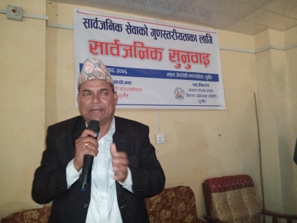 कार्यक्रममा विभिन्न विषयगत शाखाका प्रमुख, वडाअध्यक्षहरु जवाफदेहीबक्ताका रुपमा उपस्थित थिए । सहभागीहरुले नगरपालिकाको कार्यालयबाट प्रदान गरिने सेवालाई छिटो छरितो बनाउन सुझाव दिएका छन् ।