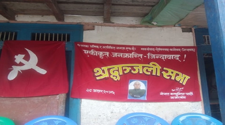 नेकपा जाजरकोट इञ्चार्ज प्रेमप्रकाश ओली (धमिल)ले दिएकोे जानकारी अनुसार आइतबार एरिया नं २ मा श्रदान्जलि कार्यक्रम सम्पन्न गरिएको हो ।