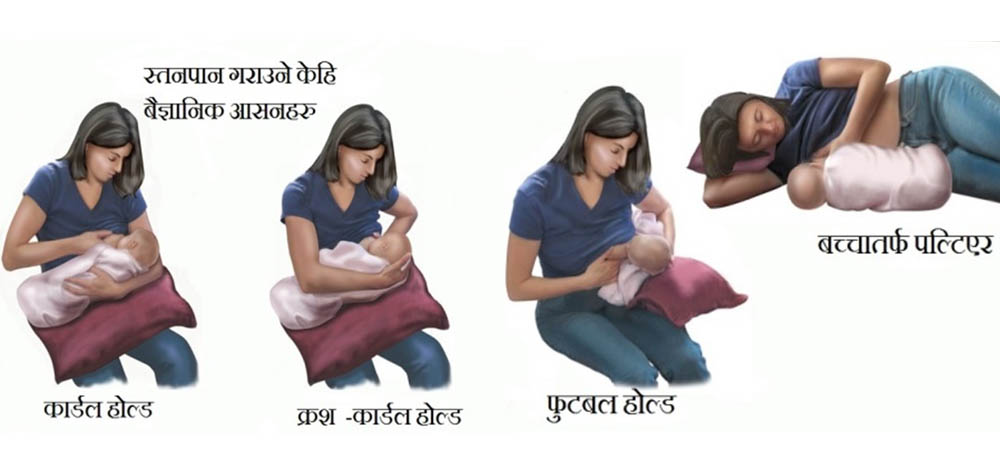 बच्चालाइ स्तनपान गराउदा निम्न वैज्ञानिक आसनहरु अवलम्बन गर्न सकिन्छ