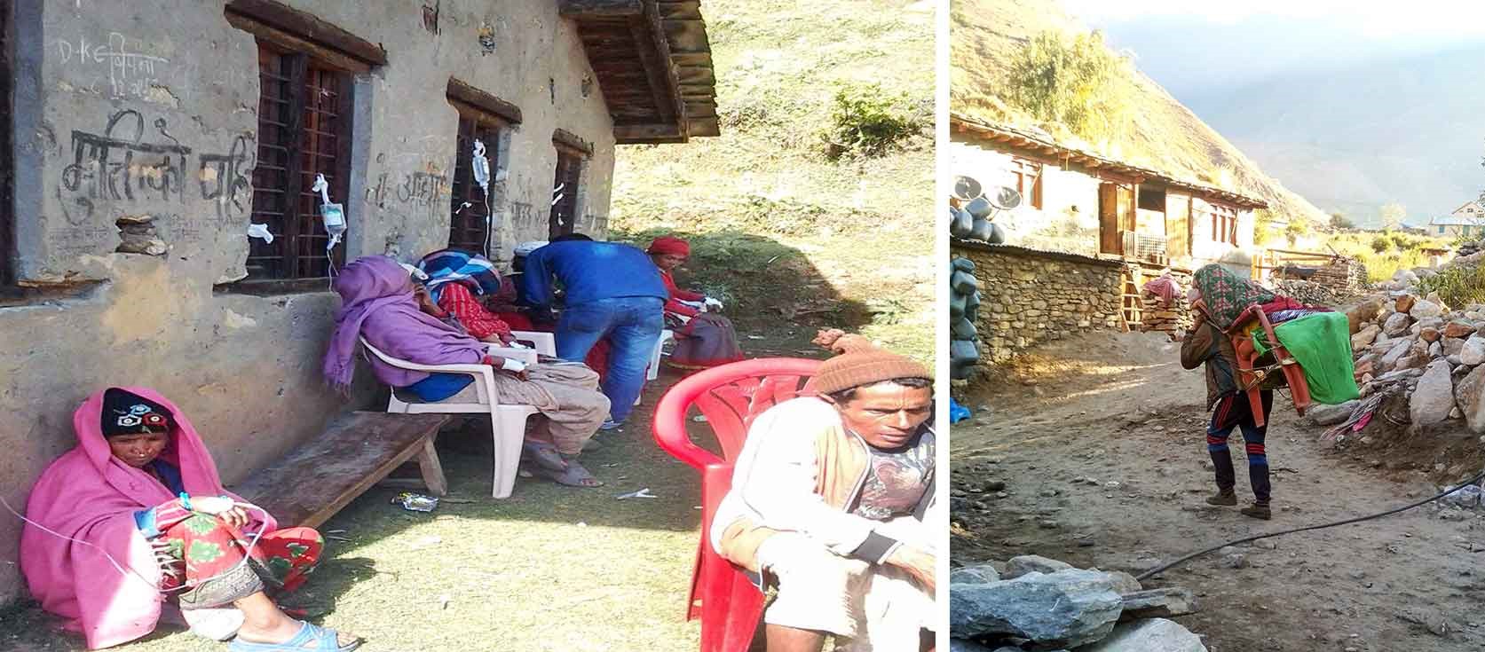 जाजरकोटका स्वास्थ्य चौकीमा डाक्टर, उपकरण र बेड छैनन्, बिरामीलाई चौरमा राखिन्छ र स्लाइनका बोतल झ्यालमा झुन्ड्याएर अहेवले गर्छन् उपचार