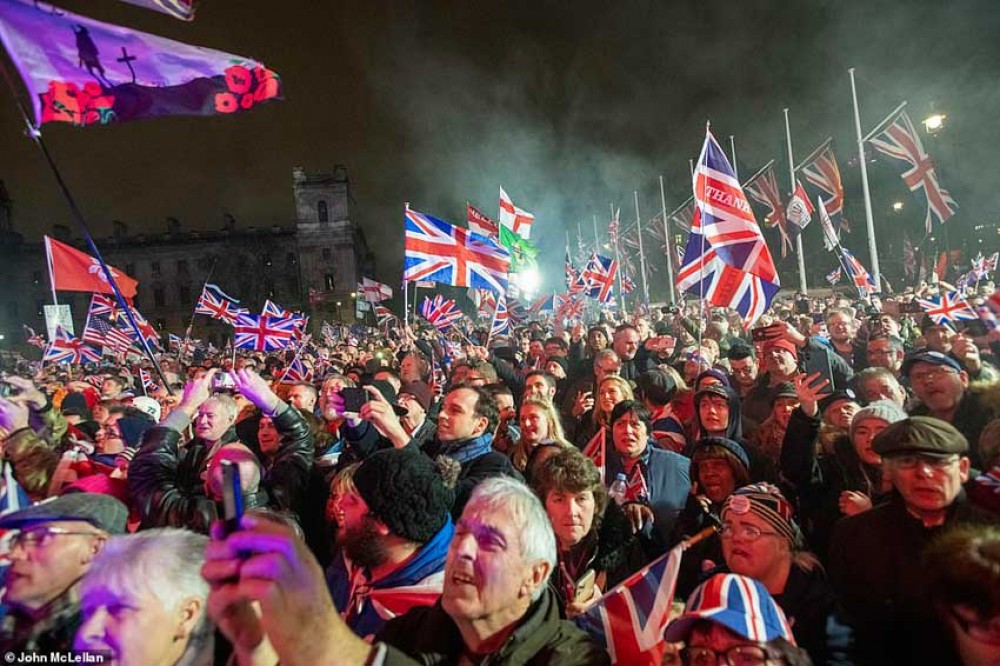 स्थानीय समय अनुसार राती ११ बजे बेलायत सरकारले युरोपियन युनियनबाट अलग भएको घोषणा गर्दा देशभर नै उत्सव मनाइएको छ ।