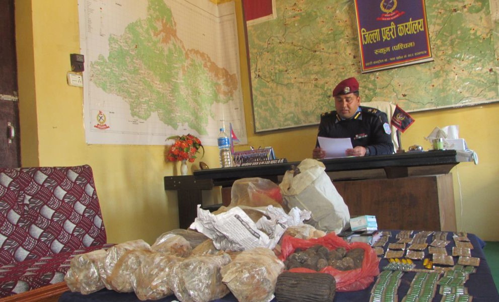 उनीहरुको साथबाट ट्याब्लेटसहित गाँजासमेत प्रहरीले फेला परेको छ। फागुन ५ गते मुसीकोट नगरपालिका–१, घ्यू खोलाबाट चरेस र कस्तुरीको दाह्रासहित अर्को एक जनालाई पक्राउ गरिएको छ। रुकुम पूर्व पुथाउत्तरगंगा गाउँपालिका–१०, घुम्लीबाङका १९ वर्षीय सिलास बुढा एक किलो ३ सय ग्राम चरेसजस्तो देखिने ठोस लागु पदार्थ, एक किलो ७ सय ग्राम जनावरकोजस्तो देखिने सुकुटी र कस्तुरीकोजस्तो देखिने दाह्रासहित पक्राउ परेका हुन्। निलो रंगको सिन्थेटिक झोला बोकेर हिँडिरहेको अवस्थामा रितपूर्वक खोजतलास गर्दा उक्त वस्तु फेला परेको डीएसपी केसीले बताए।