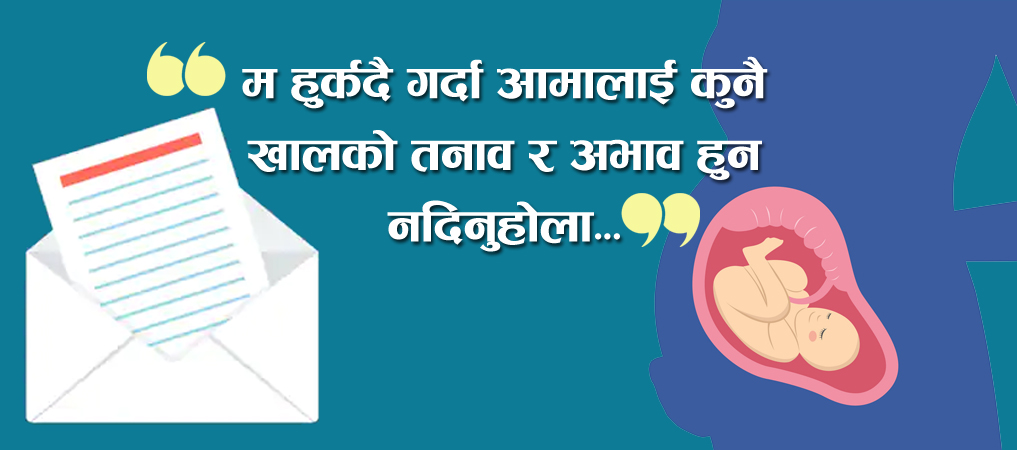 गर्भबाट बाबालाई चिठी , “बाबा म अहिले गर्भमा हुर्किरहेको छु, हजुरले आमालाई पोसिलो खाने कुरा उपलब्ध गराउनुहोला ”