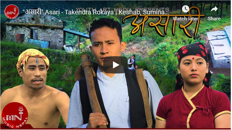 युथ आर्ट मिडिया प्रालिले असारी नामक गित म्यूजिक नेपालबाट बजारमा ल्याएको छ ।टकेन्द्र रोकायको सब्द,संगित,स्वरमा सजिएको उक्त गितमा केशब श्रेष्ठ ,सुमिना क्षेत्री ,रुपेन्द्र सिंह र काली बहादुर बुढा को अभिनय गरेका छन् ।