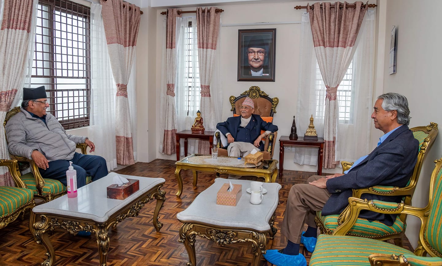 मन्त्रिपरिषद् बैठकको दुई घन्टामै प्रधानमन्त्री ओलीले देउवासँग कोभिड– १९ लाई परास्त गर्न मिलेर अघि बढ्न प्रस्ताव मात्रै राखेनन्, संकटका वेला राष्ट्रिय एकता प्रदर्शन गर्नुको विकल्प नरहेकोमा समेत जोड दिए । प्रधानमन्त्रीका प्रेस सल्लाहकार सूर्य थापाले भने देउवाले छलफलका लागि भेट्न खोजेकाले समय व्यवस्थापन गरिएको बताए । ‘उहाँ (देउवा)ले भेट्न खोज्नुभएकाले समय उपलब्ध भएअनुसार उहाँहरूबीच छलफल भएको हो,’ थापाले भने, ‘उहाँले कोभिड– १९ विरुद्ध लड्ने वेला असमयमा ल्याइएको अध्यादेश फिर्ता गर्नुपर्यो भन्दै आउनुभएको थियो, त्यसअनुसार फिर्ता भइसकेको सन्दर्भमा प्रधानमन्त्रीले अहिलेसम्म सरकारको योजना र सुविचारित कदमका कारण मानवीय क्षति हुन पाएको छैन । अब सबै मिलेर कोभिड–१९ लाई परास्त गर्न मिलेर अघि बढ्न प्रस्ताव राख्नुभएको छ ।’
