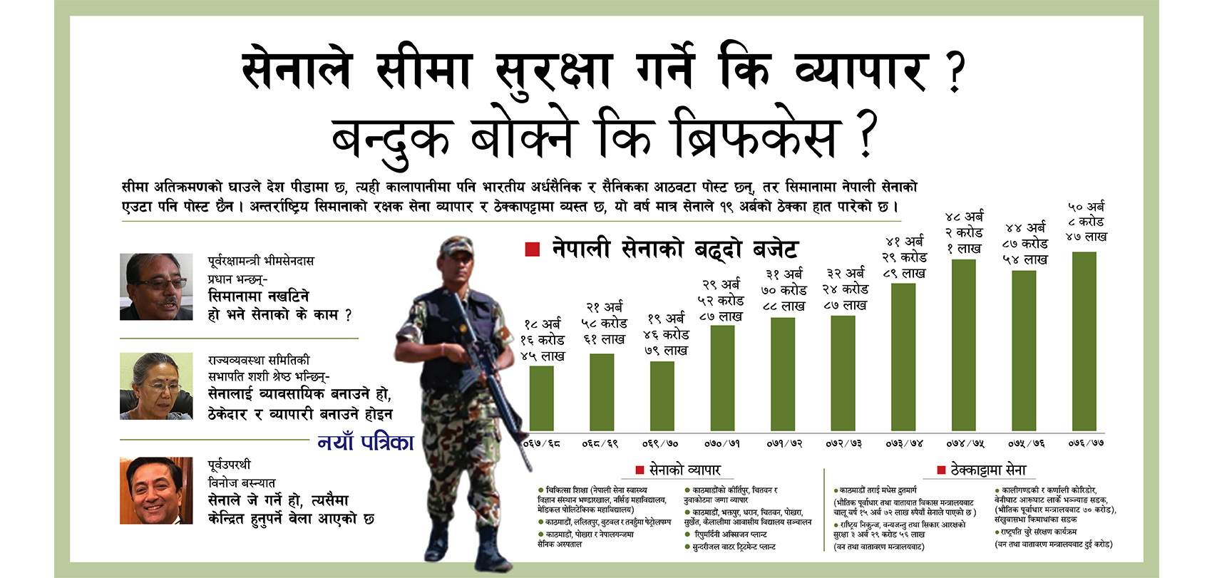 सेनाले सीमा सुरक्षा गर्ने कि व्यापार रु बन्दुक बोक्ने कि ब्रिफकेस ?