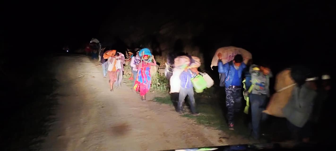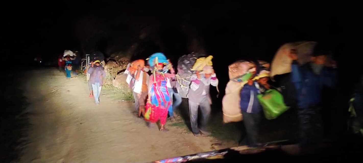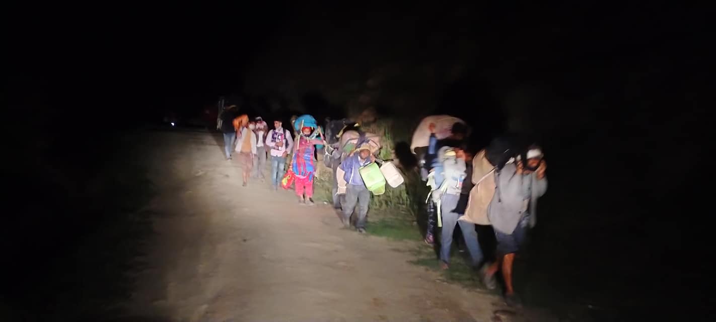 कोरोनाको त्रास सँगै थकित शरीर , रातभरीको यात्रा