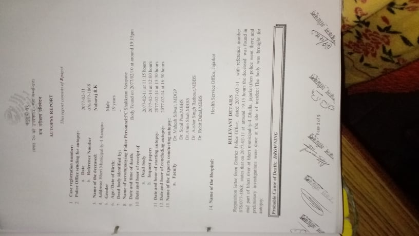 पोष्ट मार्टम रिपोर्ट सहित