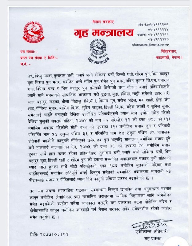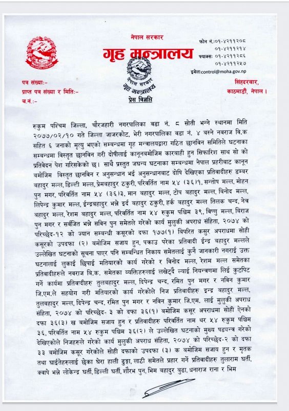 रुकुम पश्चिममा ६ जना युवाको हत्या वडाध्यक्षकै योजनामा गृहले भन्यो ः वडाध्यक्षले गाउँले बोलाए, प्रहरीलाई झुक्याए