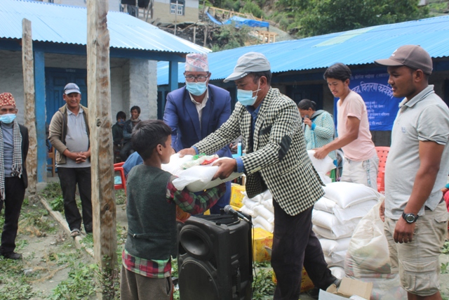 डोल्पा ः लकडाउनका कारण समस्यामा परेका दलित र आर्थिक विपन्न परिवारलाई डोल्पाका एक शिक्षकले खाद्यन्न लगायतको राहत वितरण गरेका छन ।