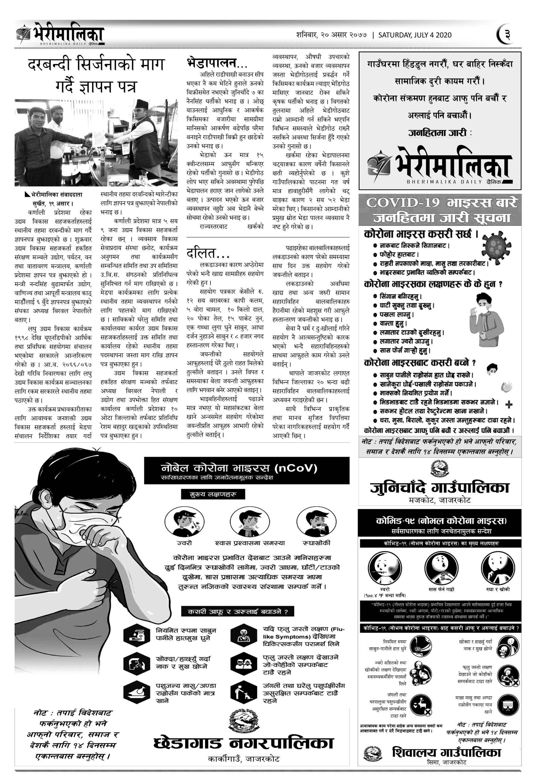 आजको भेरीमालिका दैनिकमा के छापियो ? nanda । २० असार २०७७, शनिबार ०६:१३ मा प्रकाशित आजको भेरीमालिका दैनिकमा के छापियो ? Share this: Share on X (Opens in new window) X Share on Facebook (Opens in new window) Facebook