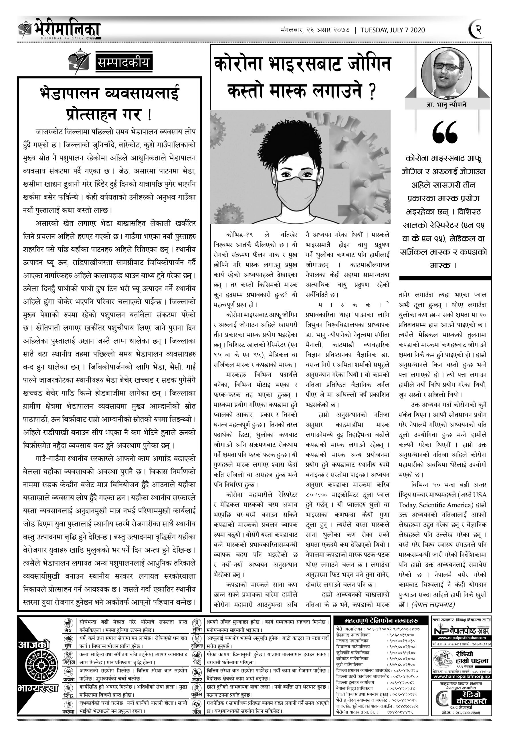 २३ असारमा के छापियो भेरीकालिका दैनिमा ? nanda । २३ असार २०७७, मंगलवार ०६:३१ मा प्रकाशित Share this: Share on X (Opens in new window) X Share on Facebook (Opens in new window) Facebook