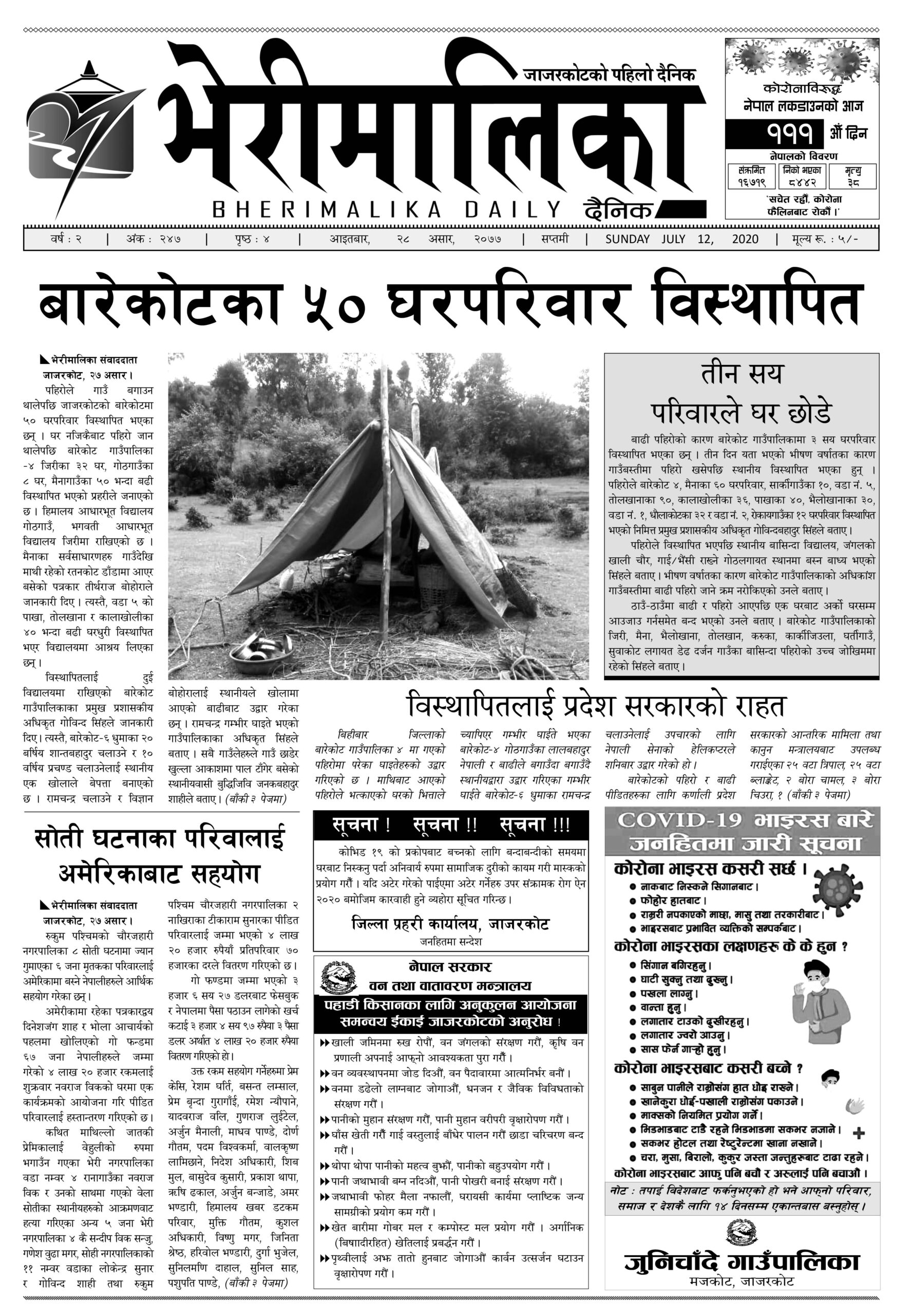 असार २८ भेरीमालिका दैनिकमा के छापियो ? nanda । २८ असार २०७७, आईतवार ०५:५५ मा प्रकाशित Share this: Share on X (Opens in new window) X Share on Facebook (Opens in new window) Facebook