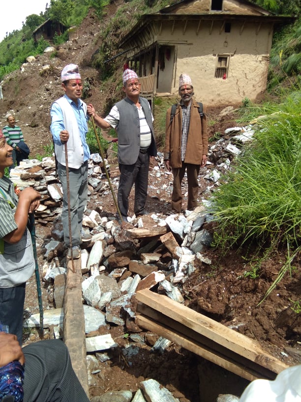 जाजरकोट , असार २५ गते बारेकोट गाउँपालिकामा वडा ४ र ६ मा आएको पहिरोका कारण मृत्यु तथा विस्थापित भएका सर्वसाधारणसँग राहत लिएर भेटघाट गदै कर्णाली प्रदेशसभा सदस्य गणेसप्रसाद सिंह , नेपाल कम्युनिष्ट पार्टी ( नेकपा) जाजरकोट अध्यक्ष ढकबीर राना , नेपाल कम्युनिष्ट पार्टी ( नेकपा) कर्णाली प्रदेश सदस्य डम्बर सिंह लगाएतको टोली ।