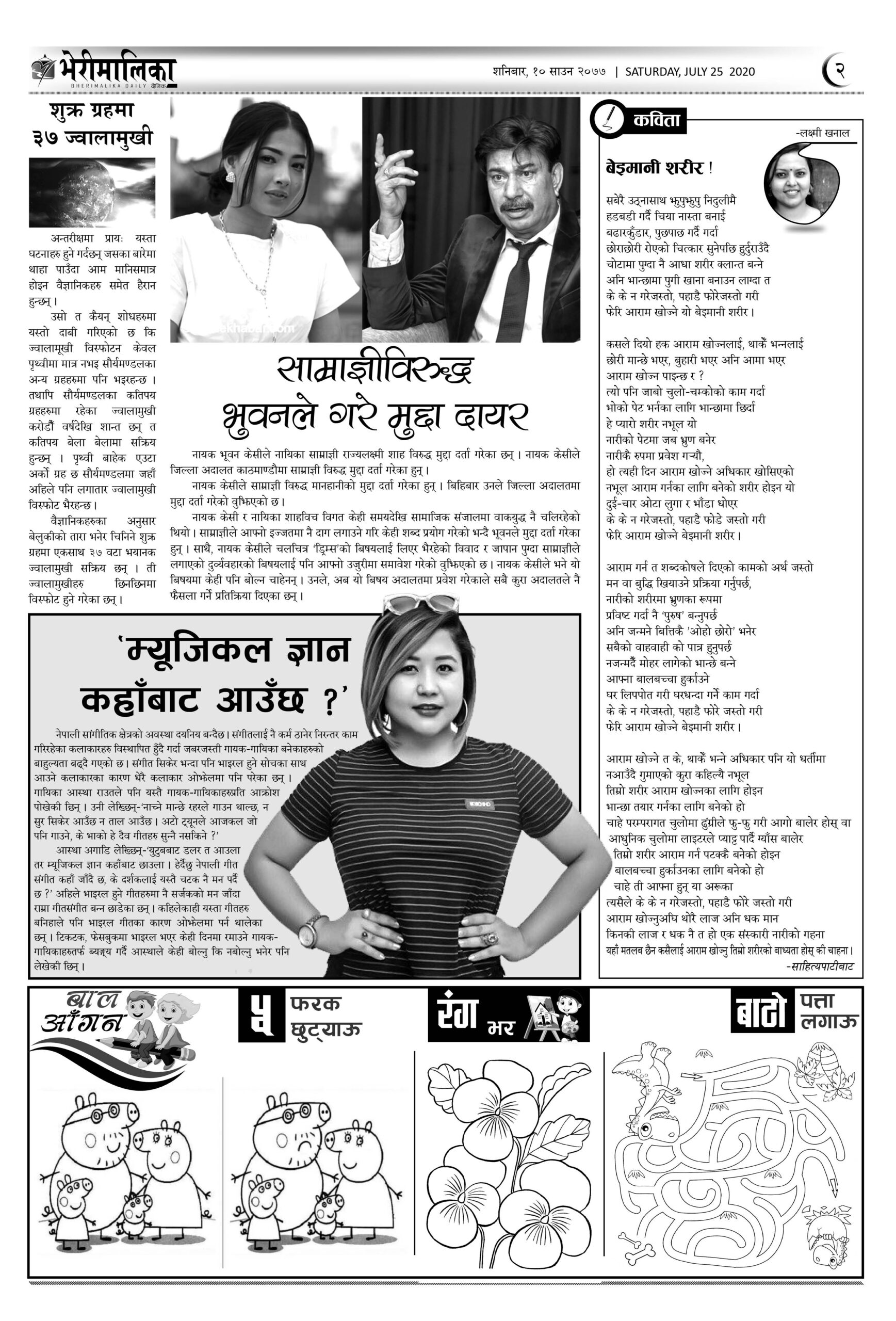 भेरीमालिका दैनिक साउन १० मा के छापियो ? नेपालपोष्ट खबर । १० श्रावण २०७७, शनिबार ०६:३६ मा प्रकाशित Share this: Share on X (Opens in new window) X Share on Facebook (Opens in new window) Facebook