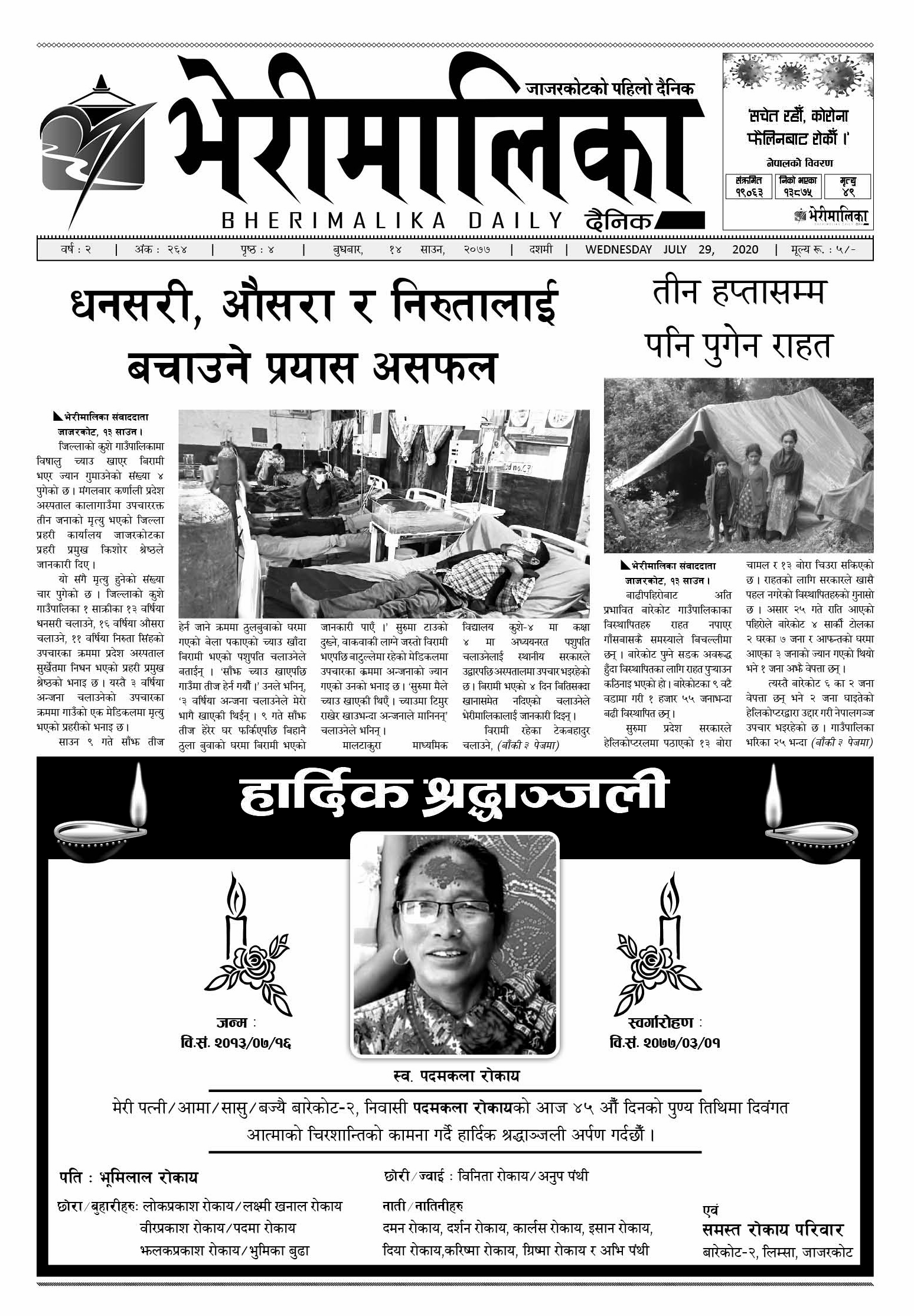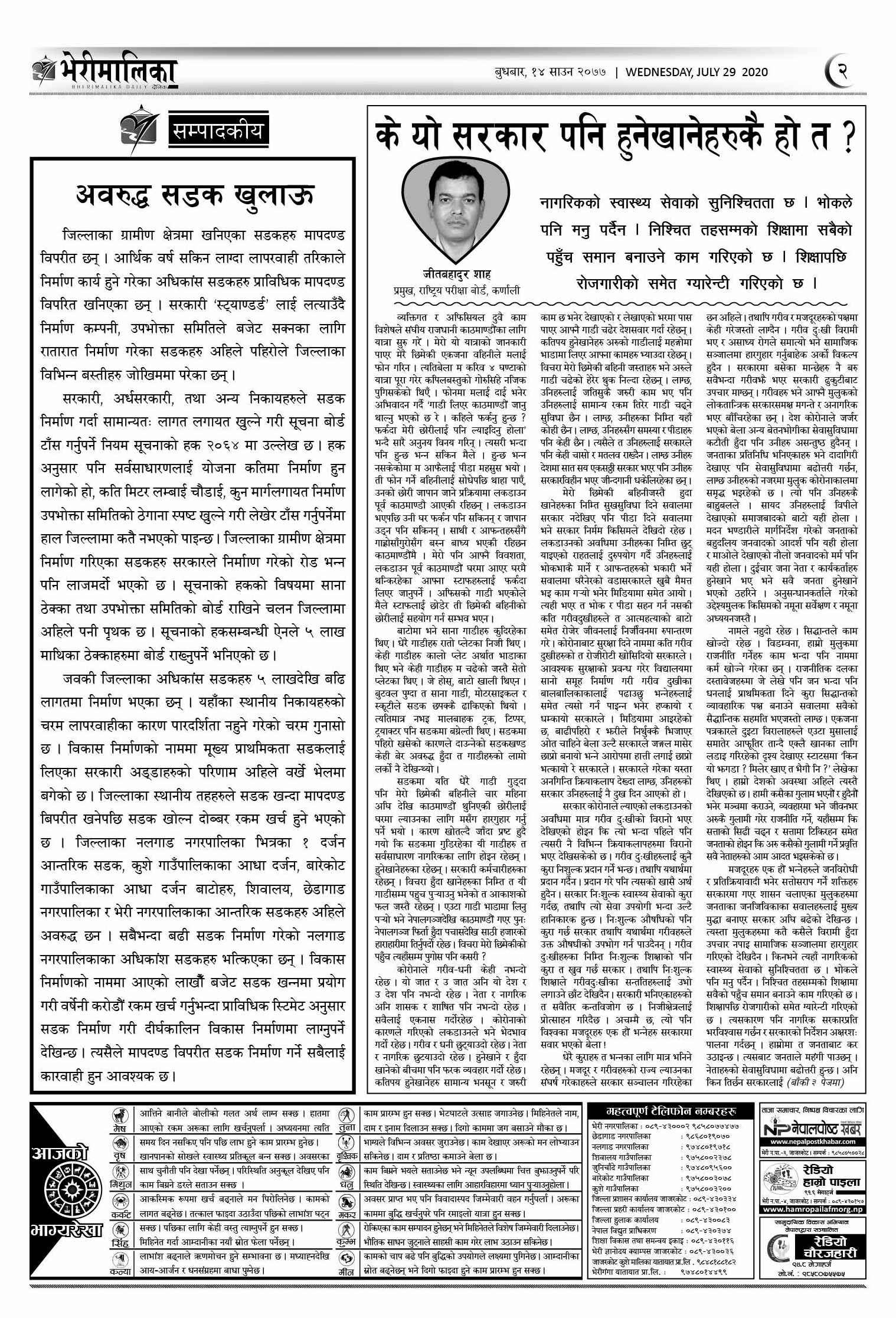 भेरीमालिका दैनिक , साउन १४ मा के छापियो ? नेपालपोष्ट खबर । १४ श्रावण २०७७, बुधबार ०८:१७ मा प्रकाशित Share this: Share on X (Opens in new window) X Share on Facebook (Opens in new window) Facebook