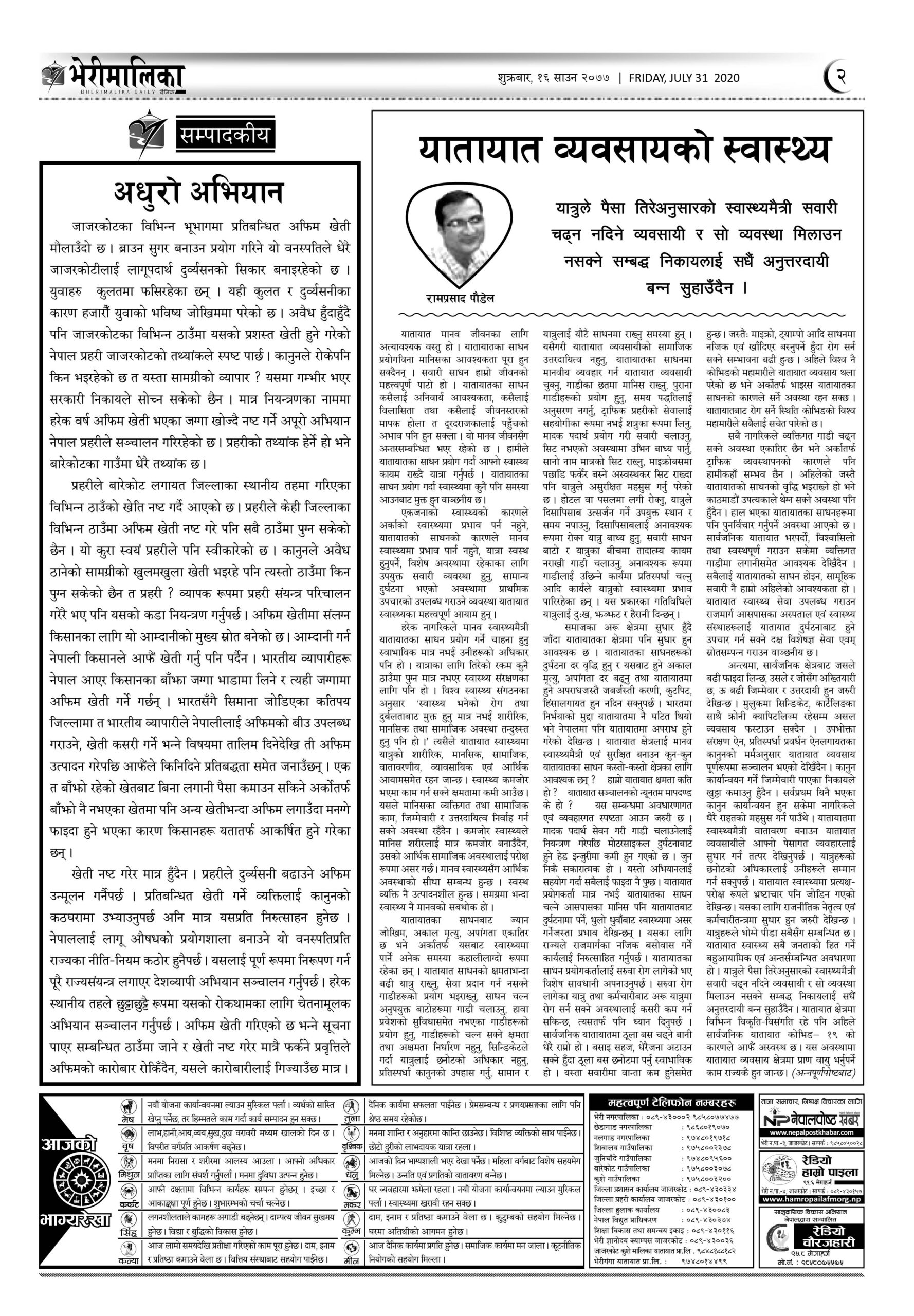 भेरीमालिका दैनिक साउन १६ , के छापियो ? नेपालपोष्ट खबर । १६ श्रावण २०७७, शुक्रबार ०९:४४ मा प्रकाशित Share this: Share on X (Opens in new window) X Share on Facebook (Opens in new window) Facebook