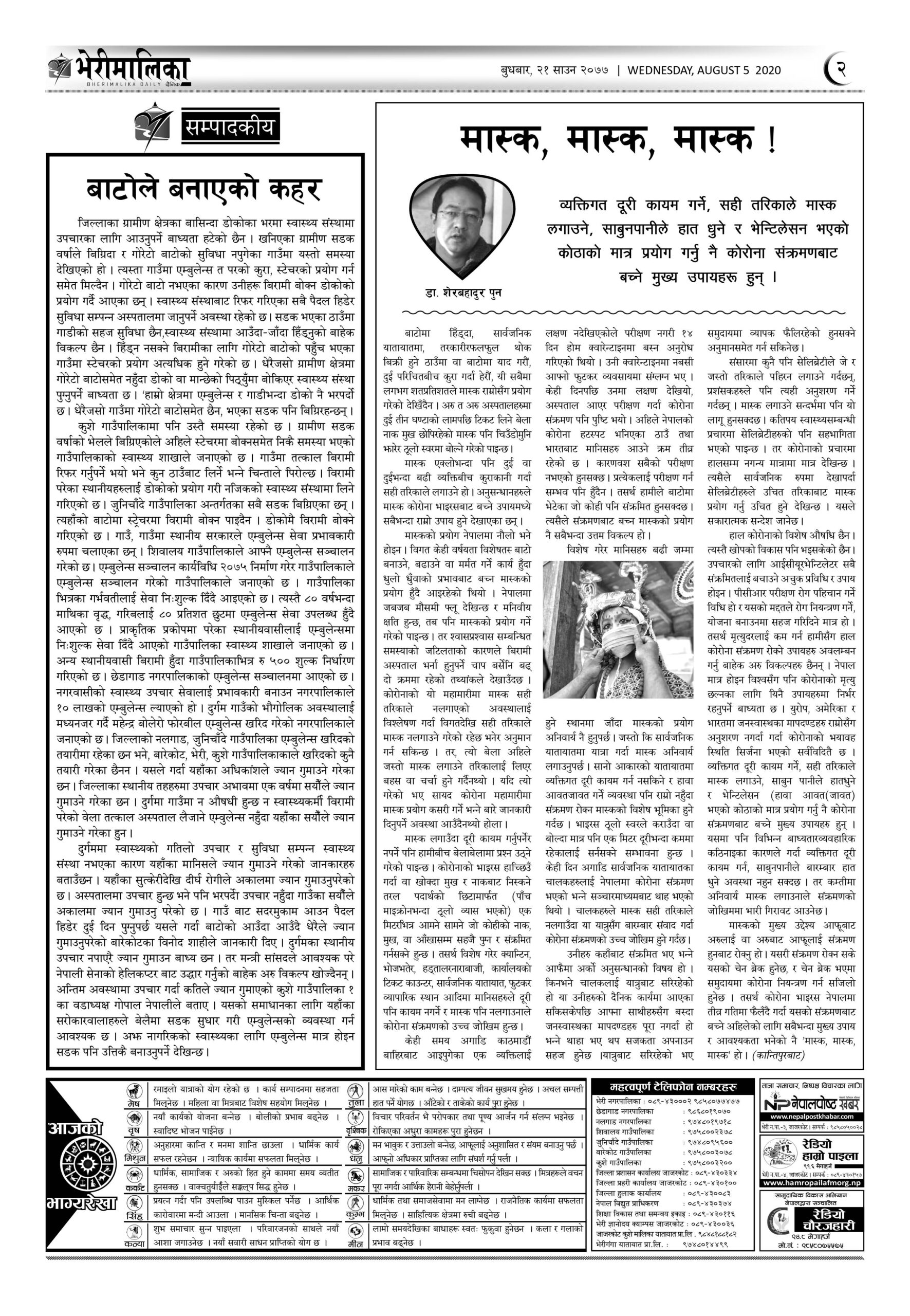 भेरीमालिका दैनिक साउन २१ मा के छापियो ? नेपालपोष्ट खबर । २१ श्रावण २०७७, बुधबार ०६:२४ मा प्रकाशित Share this: Share on X (Opens in new window) X Share on Facebook (Opens in new window) Facebook