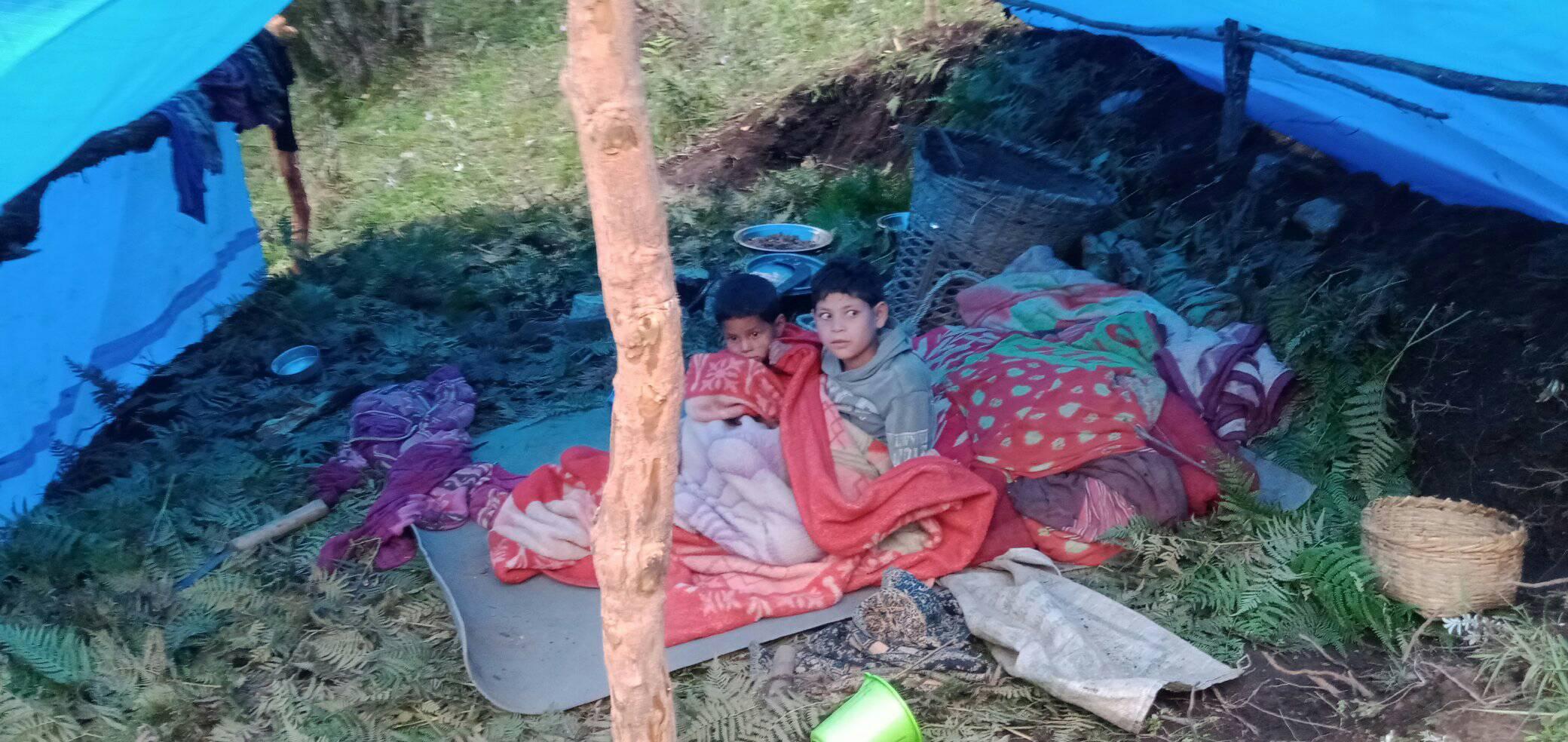 पानी पर्नेबित्तिकै त्रिपालभित्र बस्न कठिन हुँदा यहाँका एक हजारभन्दा बढी सर्वसाधाण त्रासमा बाँचेका छन् । जङ्गलभित्र त्रिपाल टाँगेर बसिरहेका उनीहरु भन्दछन् “न गतिलो बास छ, न त खाने अन्न नै छ रु”