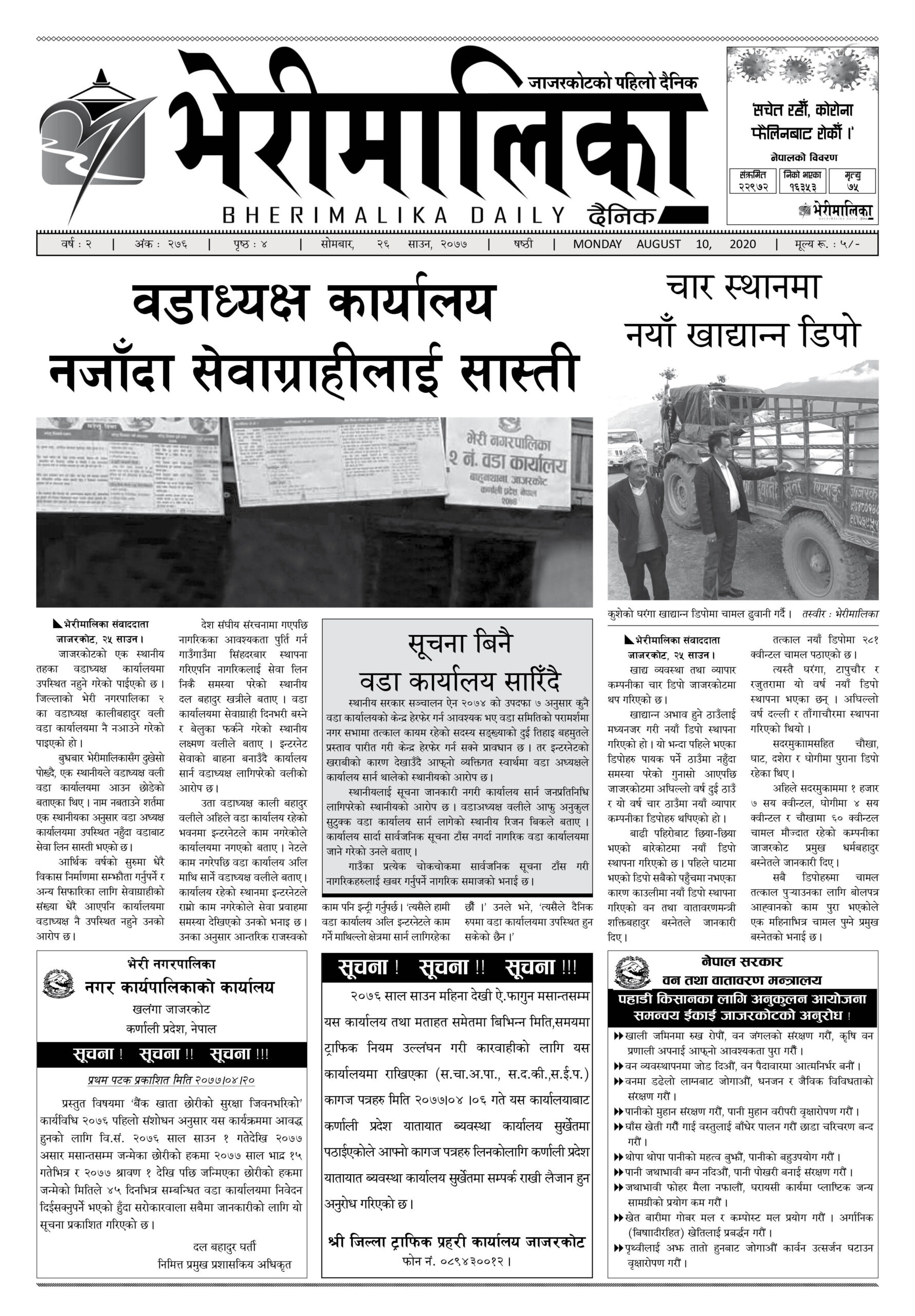भेरीमालिका दैनिक , साउन २६ मा के छापियो ? नेपालपोष्ट खबर । २६ श्रावण २०७७, सोमबार ०९:१३ मा प्रकाशित Share this: Share on X (Opens in new window) X Share on Facebook (Opens in new window) Facebook