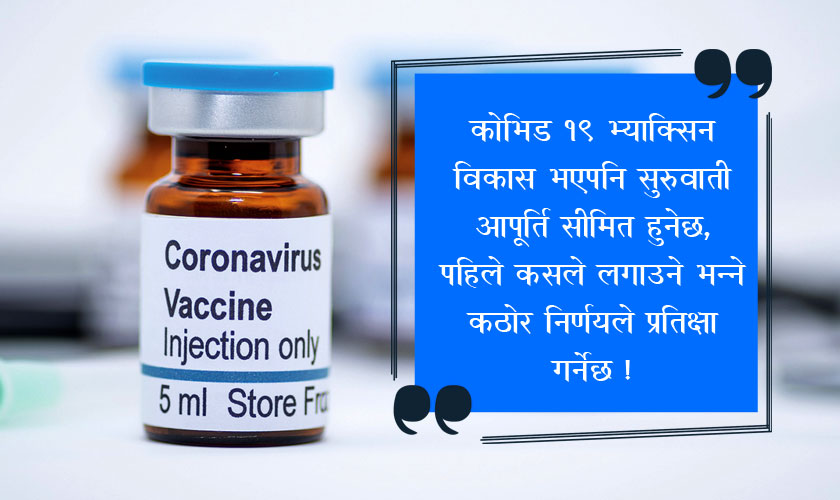 कोभिड १९ भ्याक्सिन विकास भएपनि सुरुवाती आपूर्ति सीमित हुनेछ, पहिले कसले लगाउने भन्ने कठोर निर्णयले प्रतिक्षा गर्नेछ ?