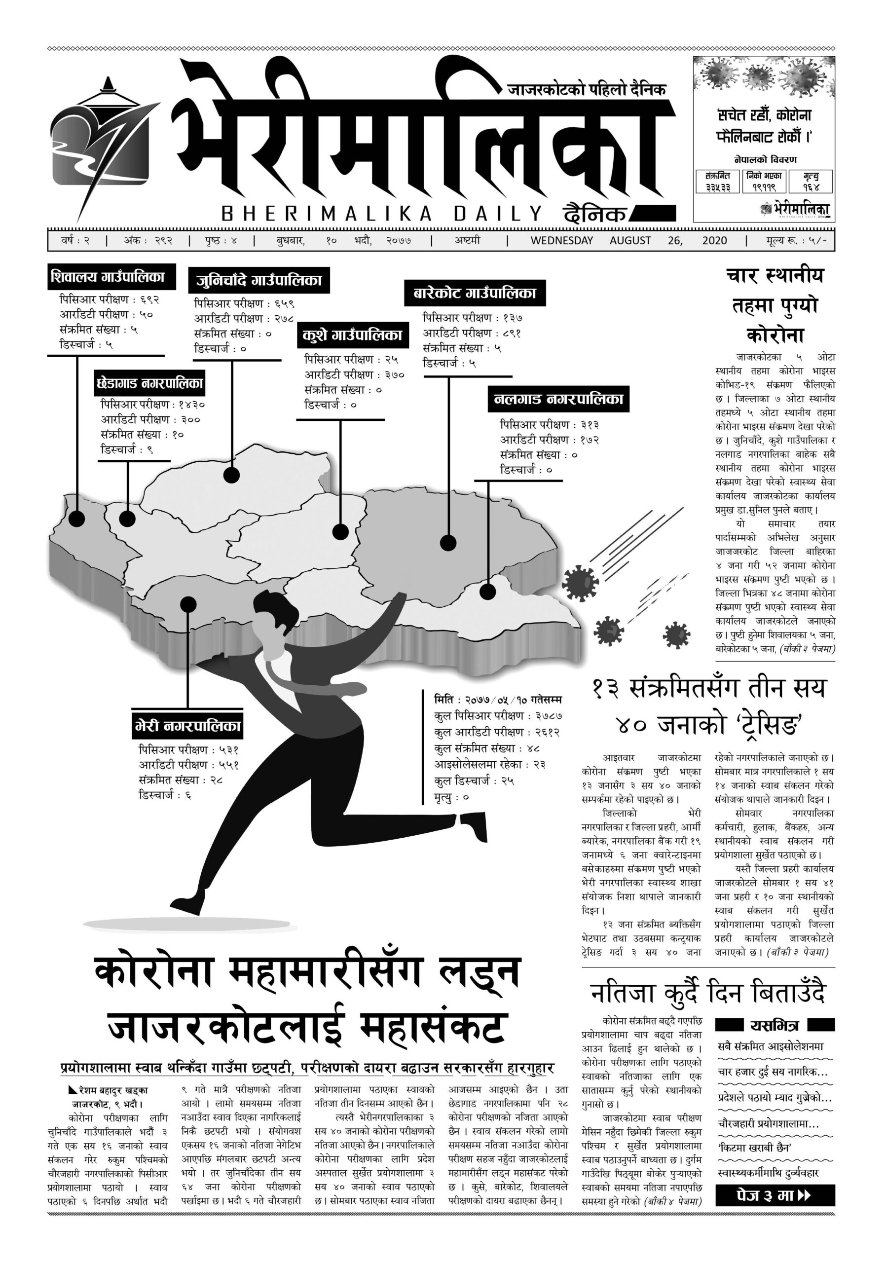 भेरीमालिका दैनिक भदौ १० गते के छापियो ?