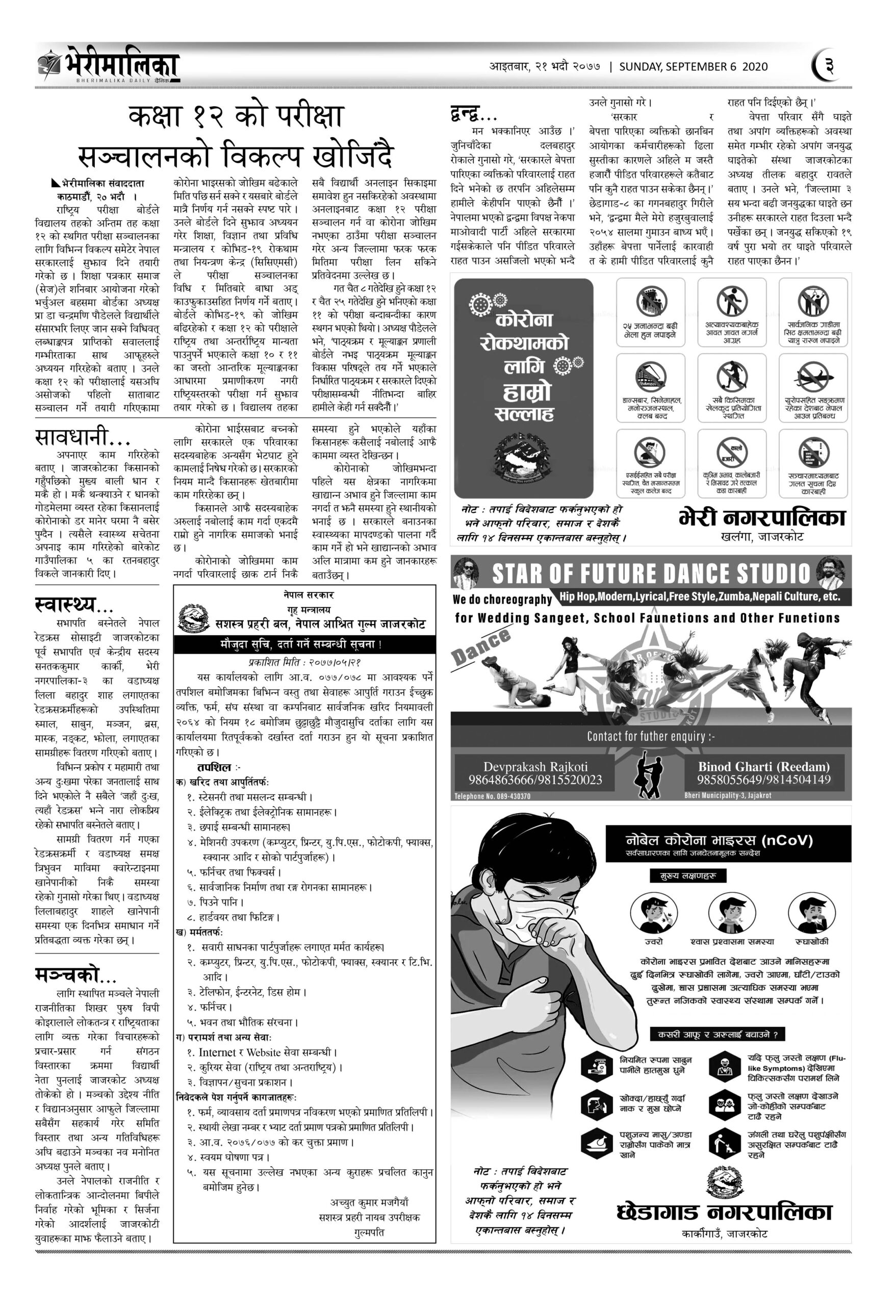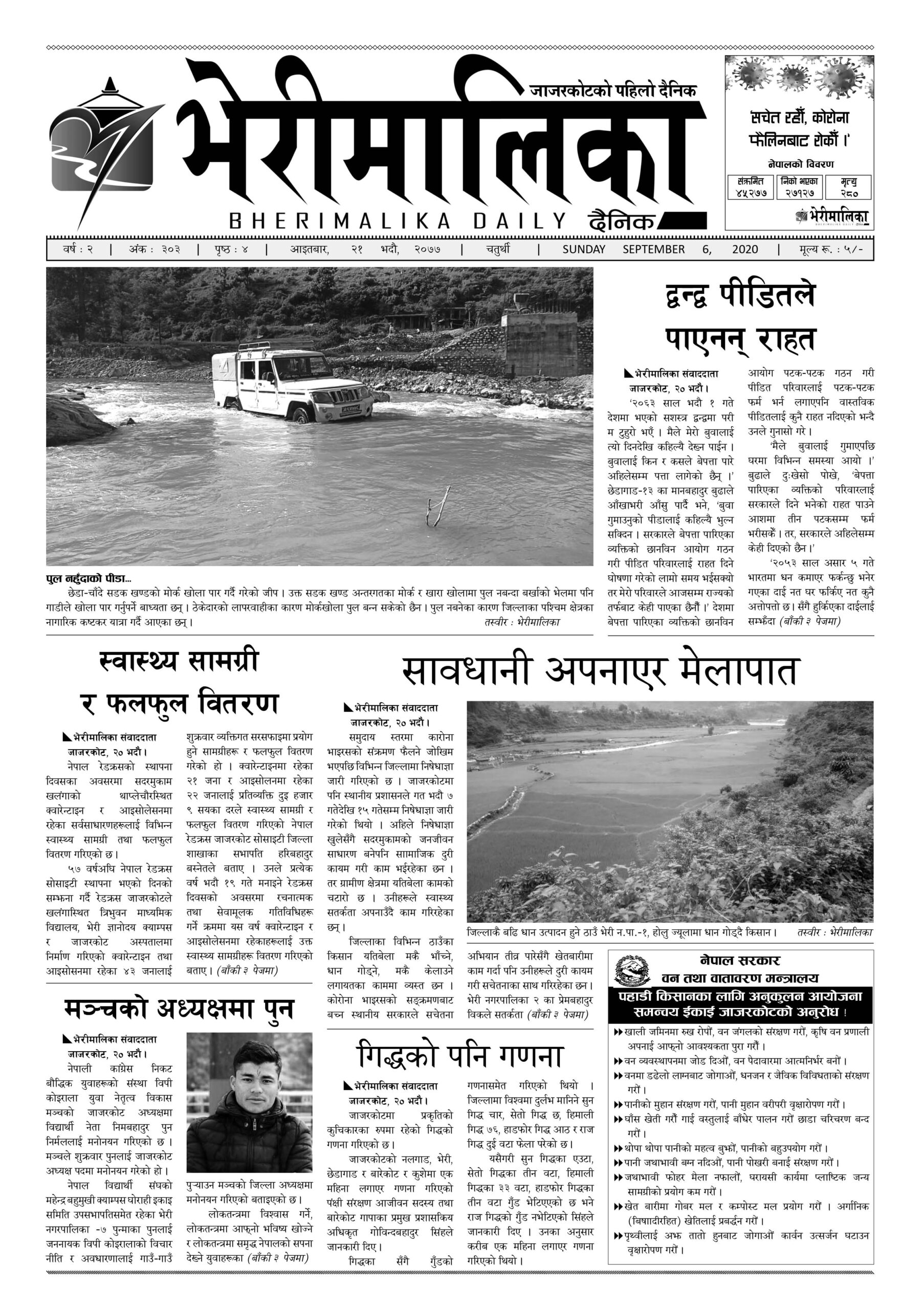 भदौ २१ गते ,भेरीमालिका दैनिकमा के छापियो ? नेपालपोष्ट खबर । २१ भाद्र २०७७, आईतवार ०६:३९ मा प्रकाशित Share this: Share on X (Opens in new window) X Share on Facebook (Opens in new window) Facebook