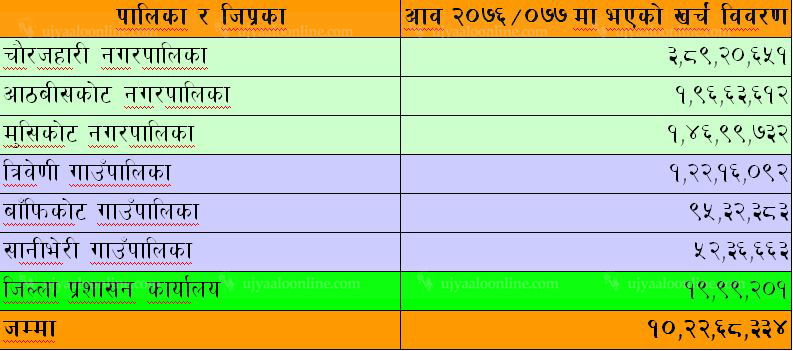 रुकुम पश्चिम स् कोरोना रोकथाममा चार महिनामा १० करोड २२ लाख बढी खर्च