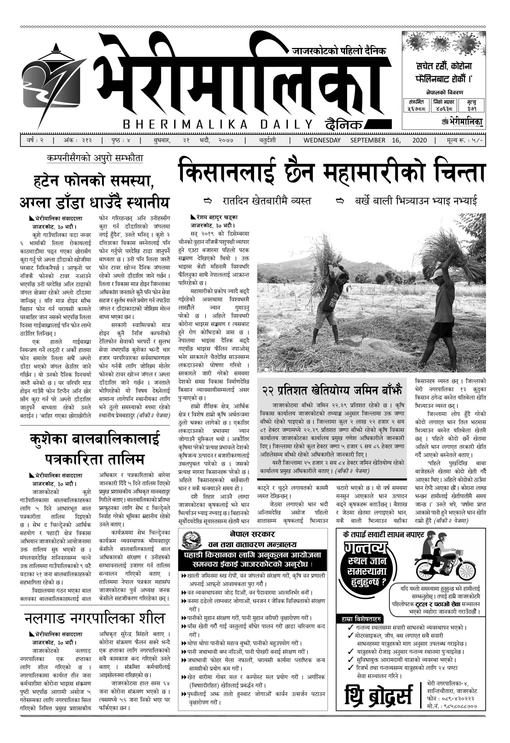 भदौ ३१ मा के छापियो भेरीमालिका दैनिकमा ? नेपालपोष्ट खबर । ३१ भाद्र २०७७, बुधबार ०६:०६ मा प्रकाशित Share this: Share on X (Opens in new window) X Share on Facebook (Opens in new window) Facebook