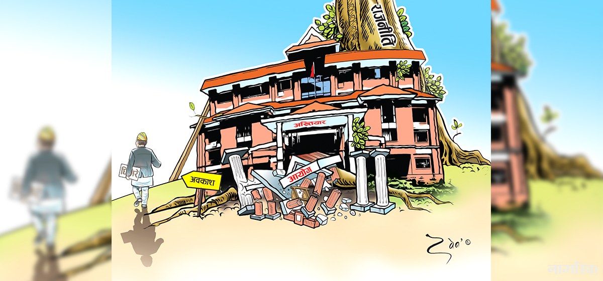 यसो गर्दा धेरै संवैधानिक निकाय र संस्था बनाउनुपर्ने र तिनका निम्ति राज्य ढुकुटी खर्च हुने अवस्था रहँदैन। अन्यथा, ती निकायमा हुने नियुक्ति निवृत्तिभरण खाइरहेको ज्यानलाई केही समय आरामदायी कुर्सीमा बस्न दिने मात्र पक्कै होइन। अख्तियार एउटा दृष्टान्त मात्र हो। यस्तो अवस्थामा सबैजस्तो संवैधानिक निकाय र लोकतन्त्रका संस्थाहरू पुगिसकेका छन्। यसले अन्ततः लोकतन्त्रको मृत्युलाई अवश्यम्भावी बनाउनेछ। संविधान दिवस मनाउन लागेको यो सातामा अलि निर्मम भएर सोच्ने कि ?