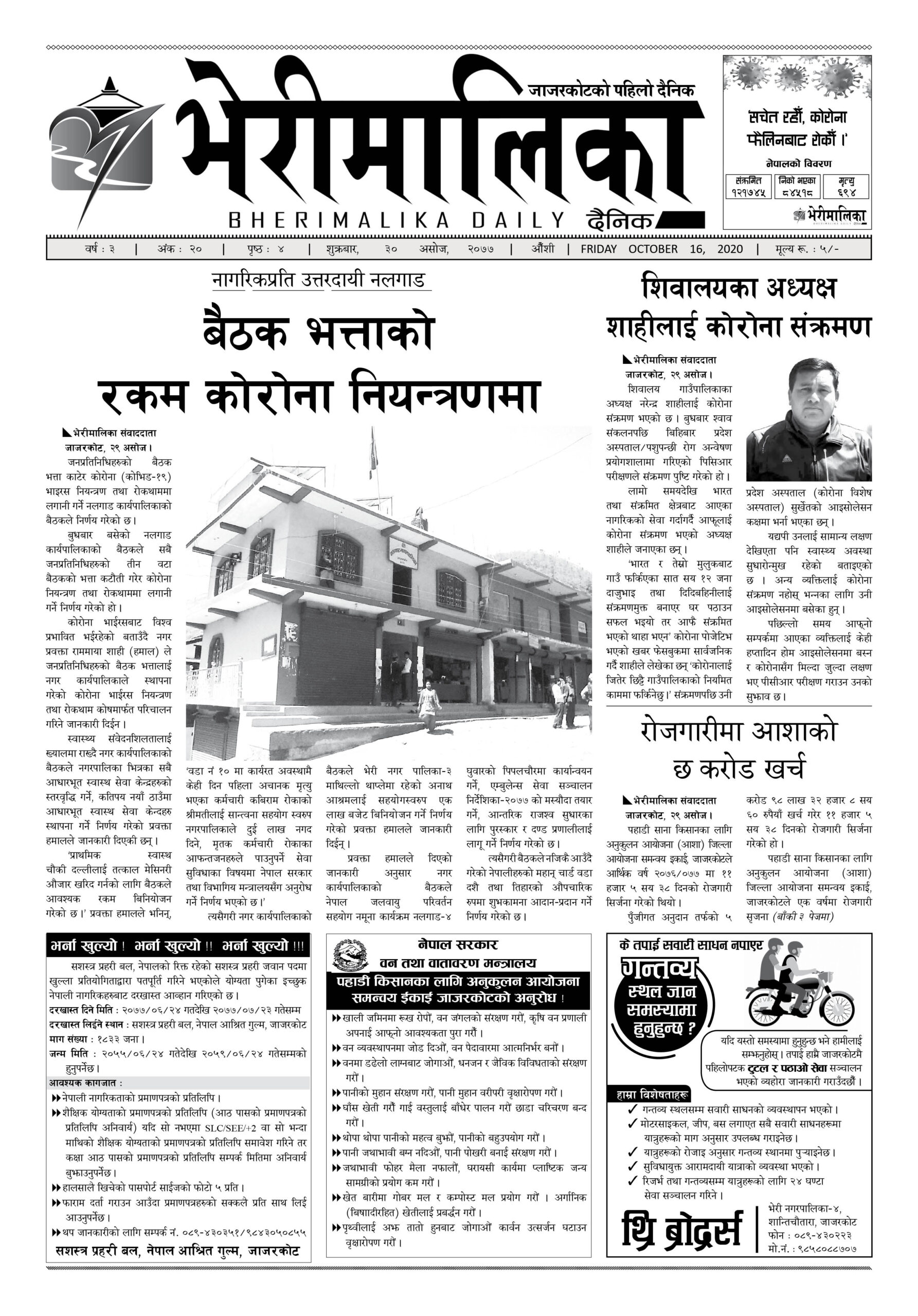 असोज ३० मा के छापियो भेरीमालिका दैनिकमा ? नेपालपोष्ट खबर । ३० आश्विन २०७७, शुक्रबार ०८:०७ मा प्रकाशित Share this: Share on X (Opens in new window) X Share on Facebook (Opens in new window) Facebook