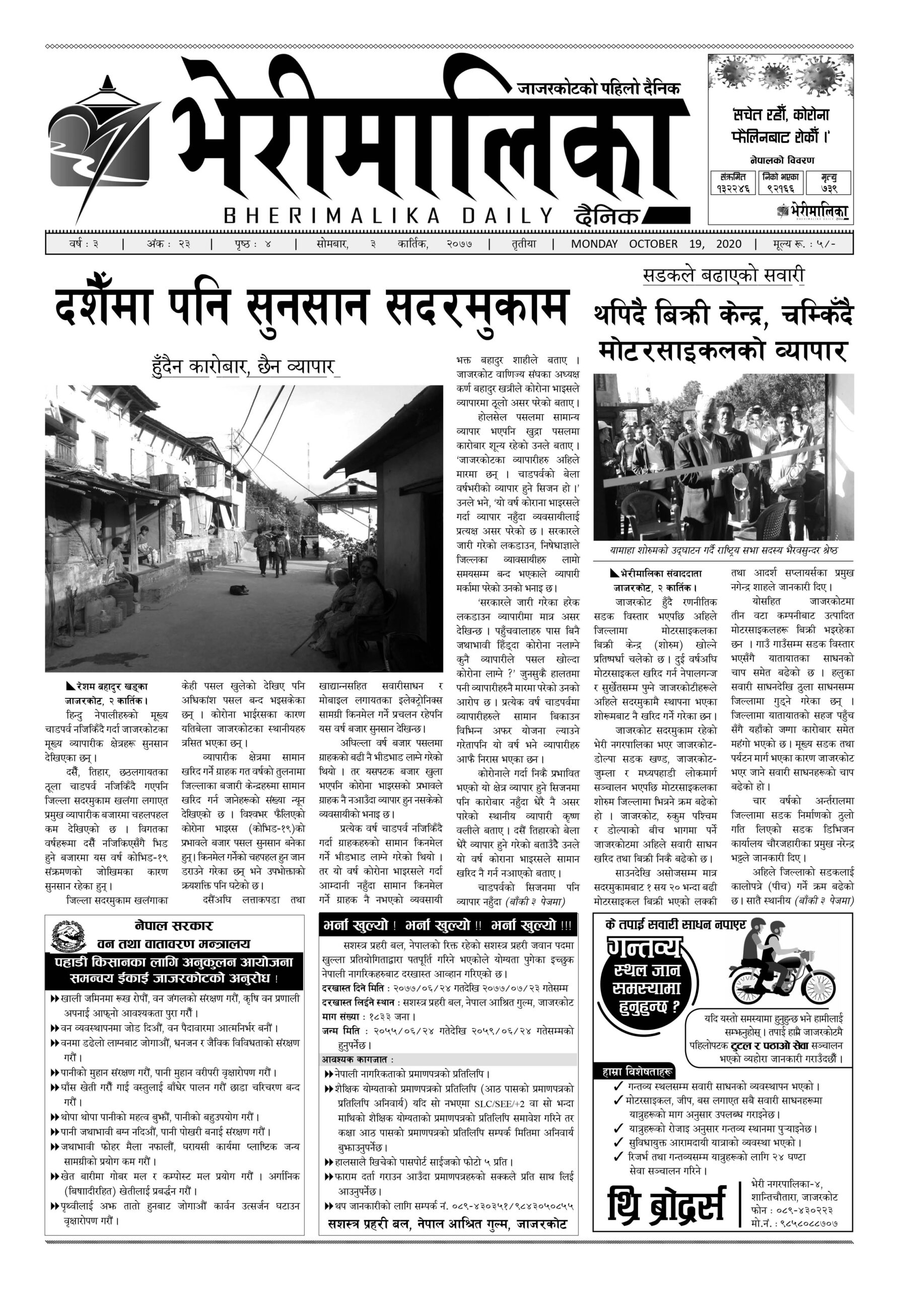 कात्तिक ३ मा के छापियो भेरीमालिका दैनिकमा ? नेपालपोष्ट खबर । ३ कार्तिक २०७७, सोमबार ०६:३२ मा प्रकाशित Share this: Share on X (Opens in new window) X Share on Facebook (Opens in new window) Facebook