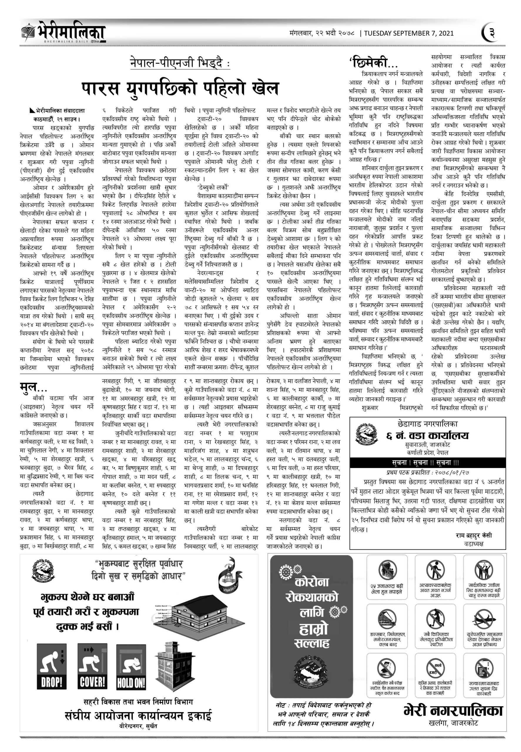 के छापियो भेरीमालिका दैनिकमा ? नेपालपोष्ट खबर । २२ भाद्र २०७८, मंगलवार १२:१९ मा प्रकाशित Share this: Share on X (Opens in new window) X Share on Facebook (Opens in new window) Facebook