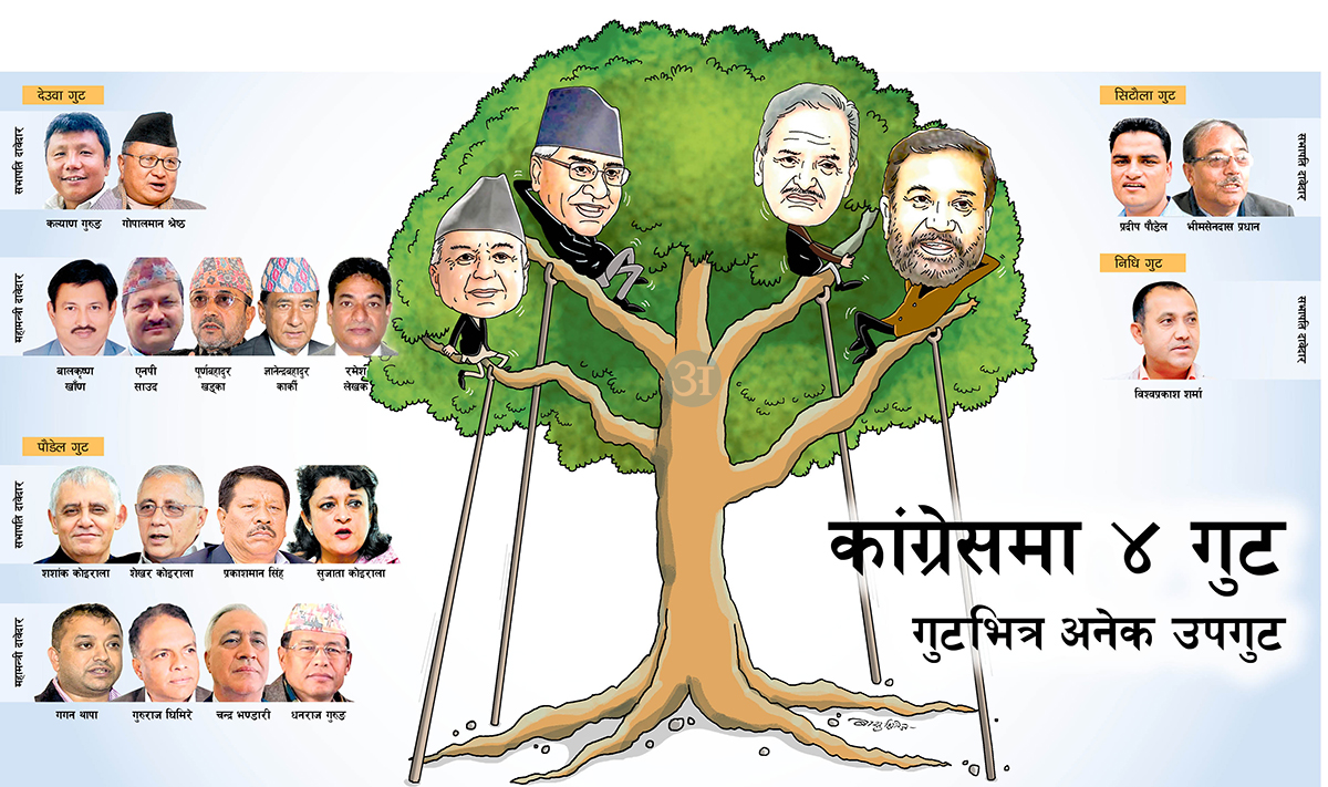 कांग्रेस केन्द्रीय सदस्य देवेन्द्रराज कँडेल भन्छन्, ‘त्यतिबेला पनि नेताहरू अंकमाल गर्ने, सँगै फोटो खिचाउने र हात उठाउने चलन थियो।’ उनले भने, ‘गुटका कारण अरू बेला ठूला कुरा गर्ने युवाहरू खुट्टा कमाउँछन्। गुटका कारण पदप्रतिको मोह बढेको हो। जो शक्तिमा हुन्छ त्यो प्रतिगुटको झुण्डनै लाग्छ। यो संस्कार खराब छ।’