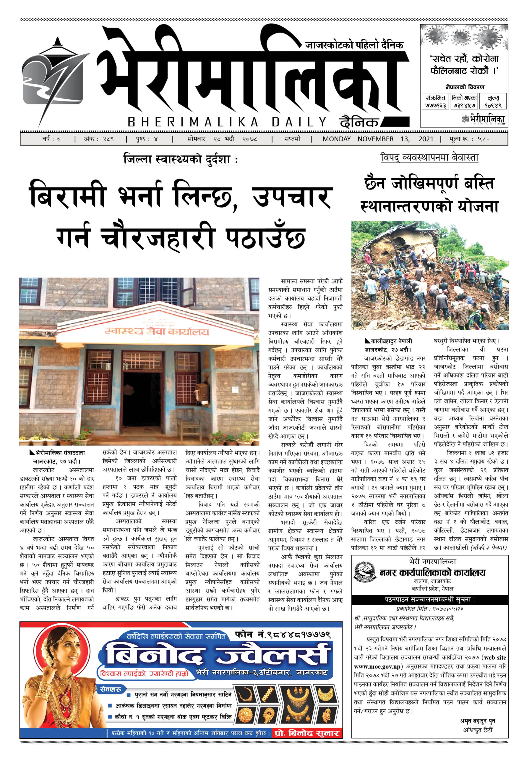 भेरीमालिका दैनिकमा आज के छापियो ? नेपालपोष्ट खबर । २८ भाद्र २०७८, सोमबार ०६:५३ मा प्रकाशित Share this: Share on X (Opens in new window) X Share on Facebook (Opens in new window) Facebook