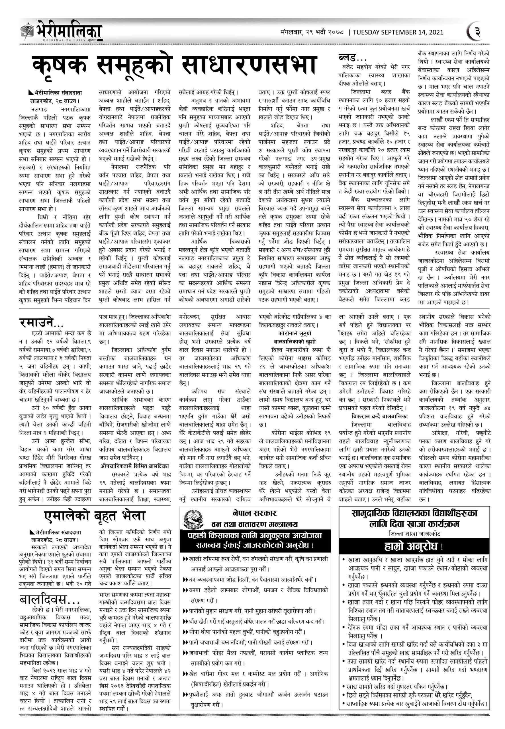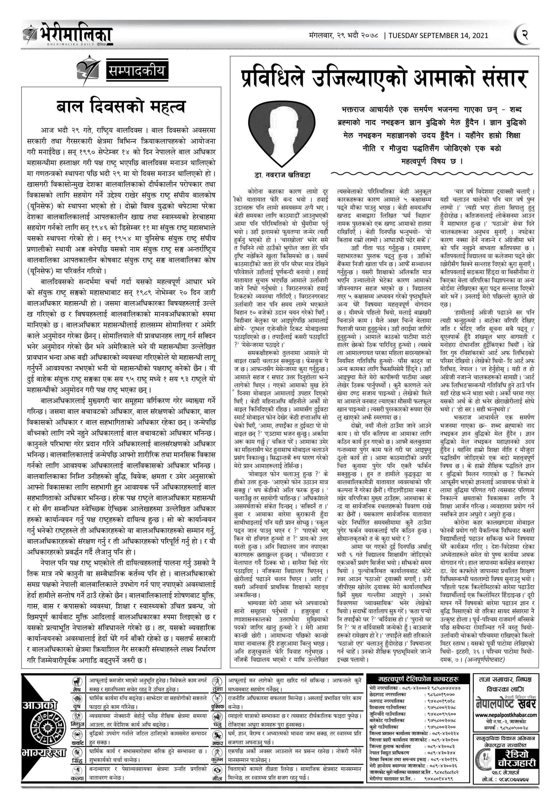भेरीमालिका दैनिक पत्रिकामा आज के छापियो ? नेपालपोष्ट खबर । २९ भाद्र २०७८, मंगलवार २२:५१ मा प्रकाशित Share this: Share on X (Opens in new window) X Share on Facebook (Opens in new window) Facebook