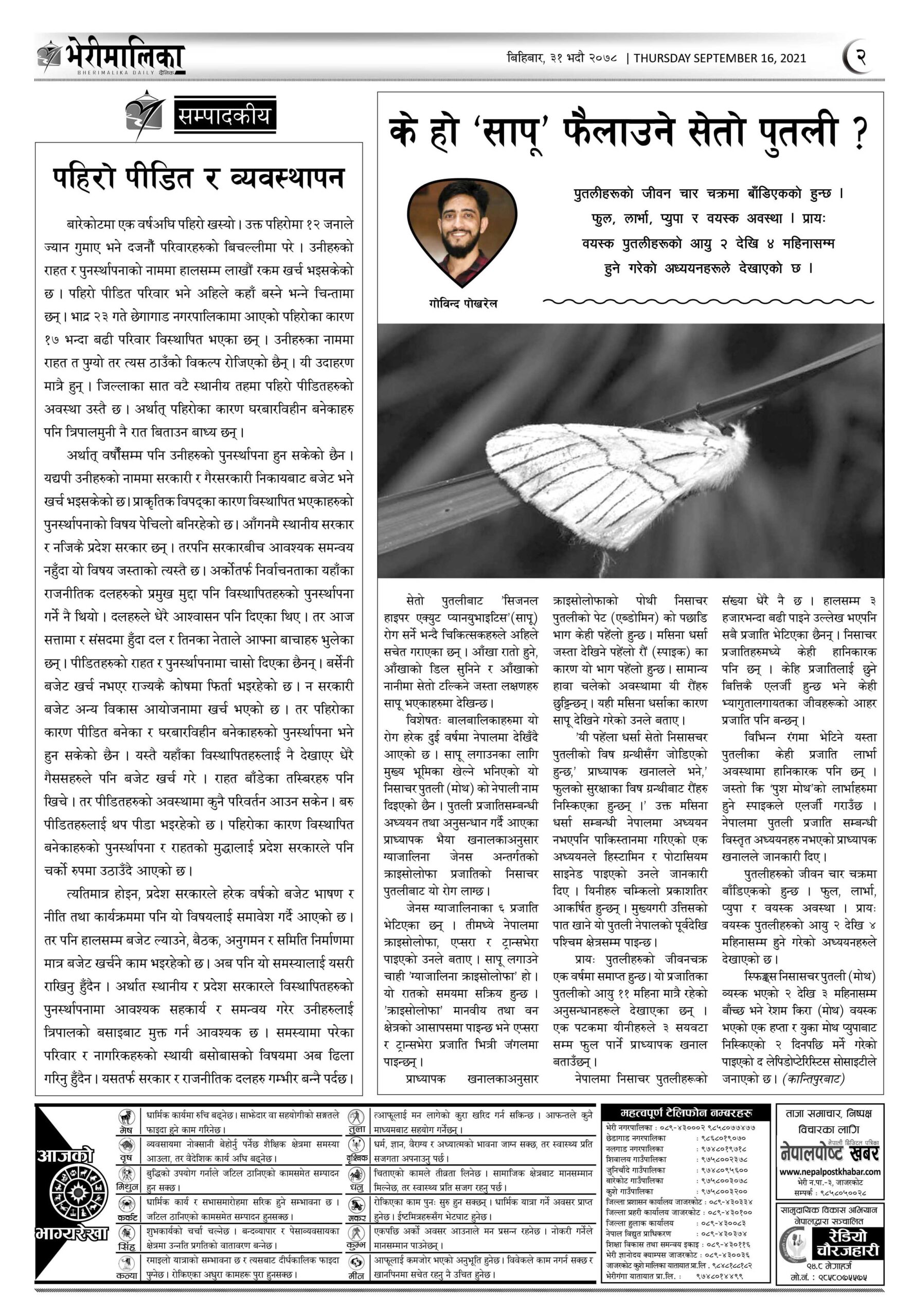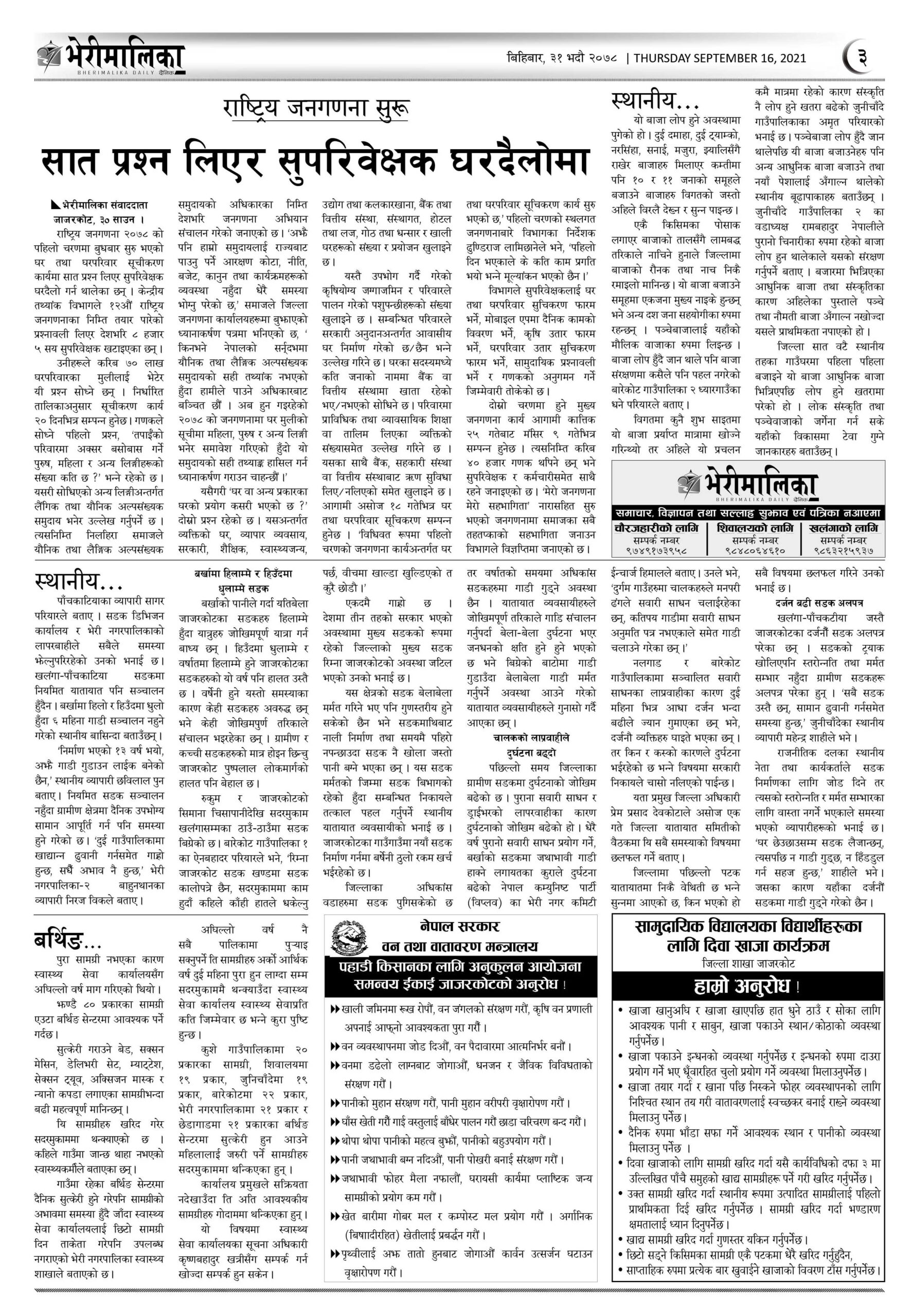 भेरीमालिका दैनिक पत्रिकामा आज के छापियो ? नेपालपोष्ट खबर । ३१ भाद्र २०७८, बिहीबार ०६:२१ मा प्रकाशित Share this: Share on X (Opens in new window) X Share on Facebook (Opens in new window) Facebook