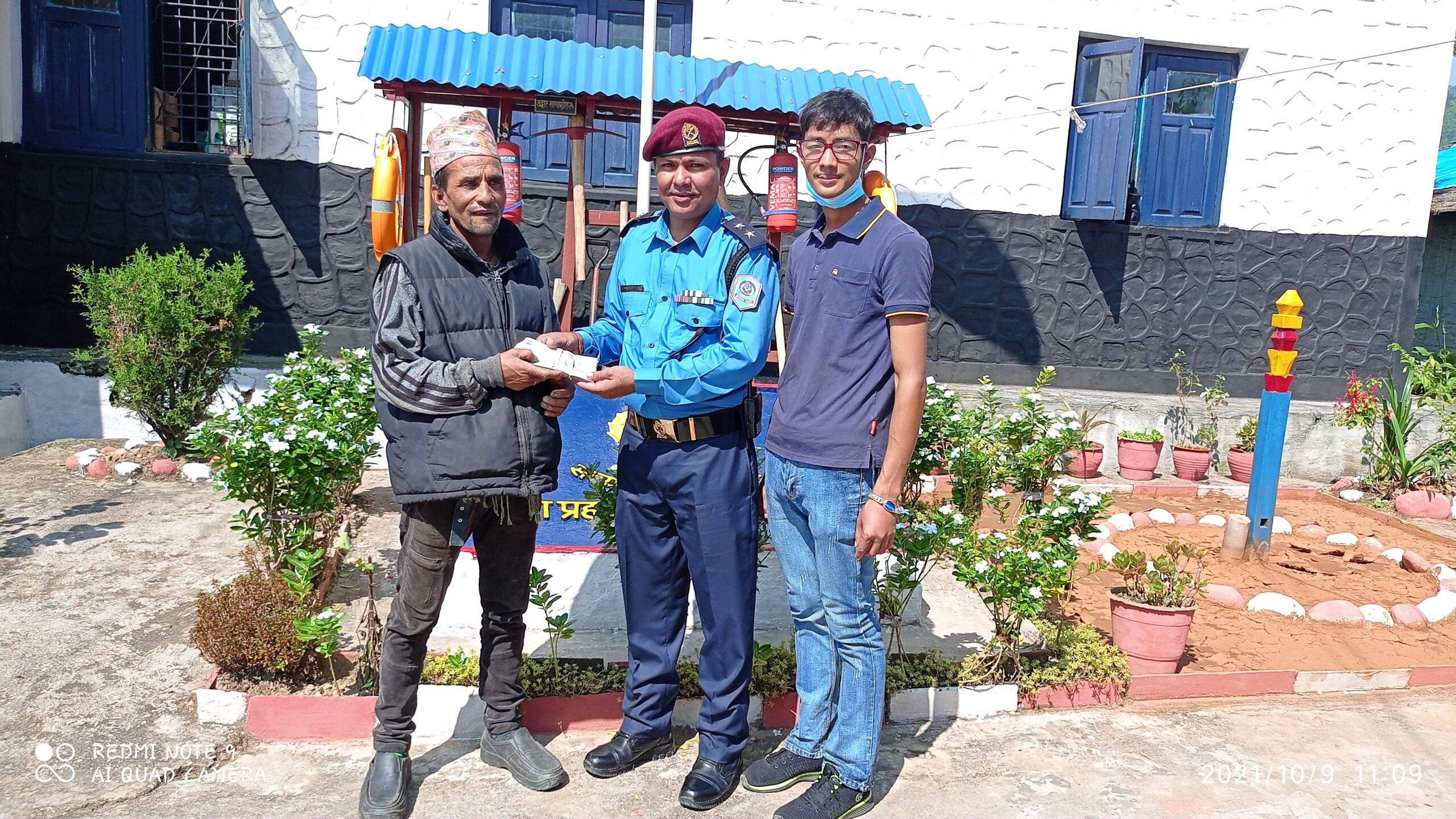 मदिराको नशाले छोडेपछि शनिवार बिहानमात्र रकम हराएको थाह पाएका उनले सोधीखोजी गर्दा प्रहरीको सम्पर्कमा आएको र उनको बयानका आधारमा रकम उनकै भएको यकिन गरेर रकम फेला पार्ने ब्यक्तिको रोहवरमा हराएको एक लाख रुपैयाँ हस्तान्तरण गरिएको प्रहरी प्रमुख थापाले बताए । रकम फेला पारेर इमान्दारपूर्वक प्रहरीलाई बुझाउने दुवै युवालाई प्रहरी प्रमुख थापाले धन्यवाद ज्ञापन गरेका छन् ।