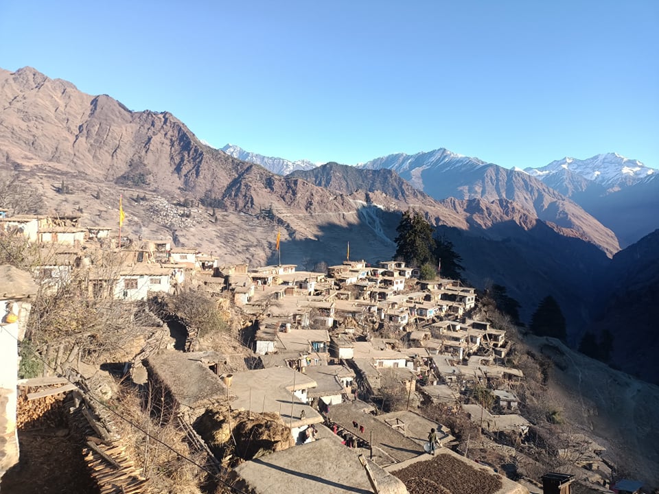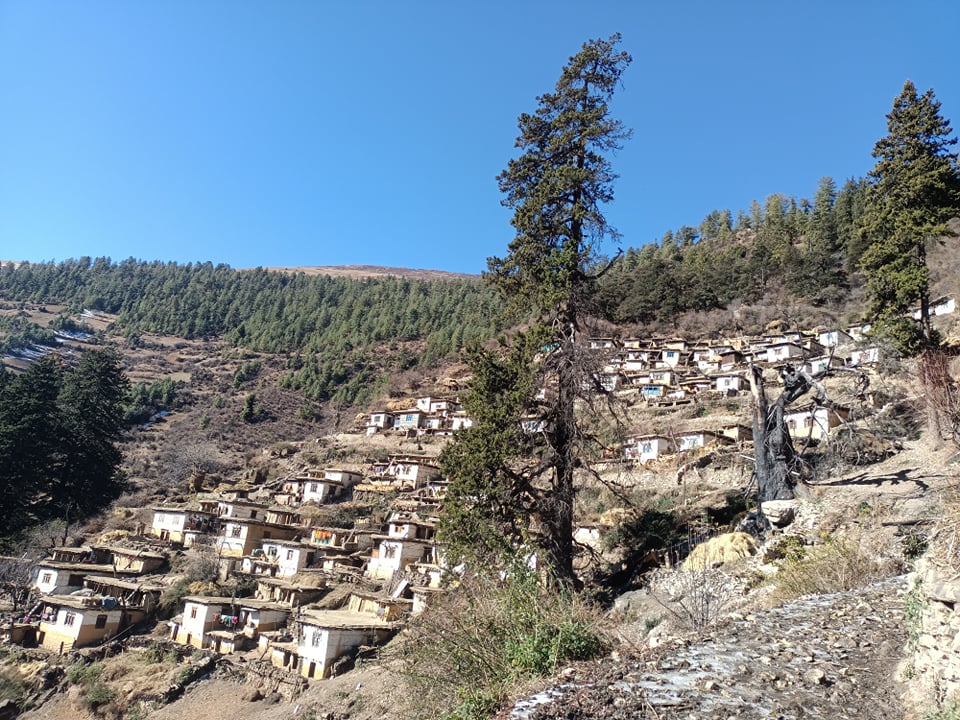 ठूलिभेरी नगरपालिका–६ थरगाउँ डोल्पाका सर्वसाधारणले घर माथि घर जोडेर बनाएका घरहरु ।