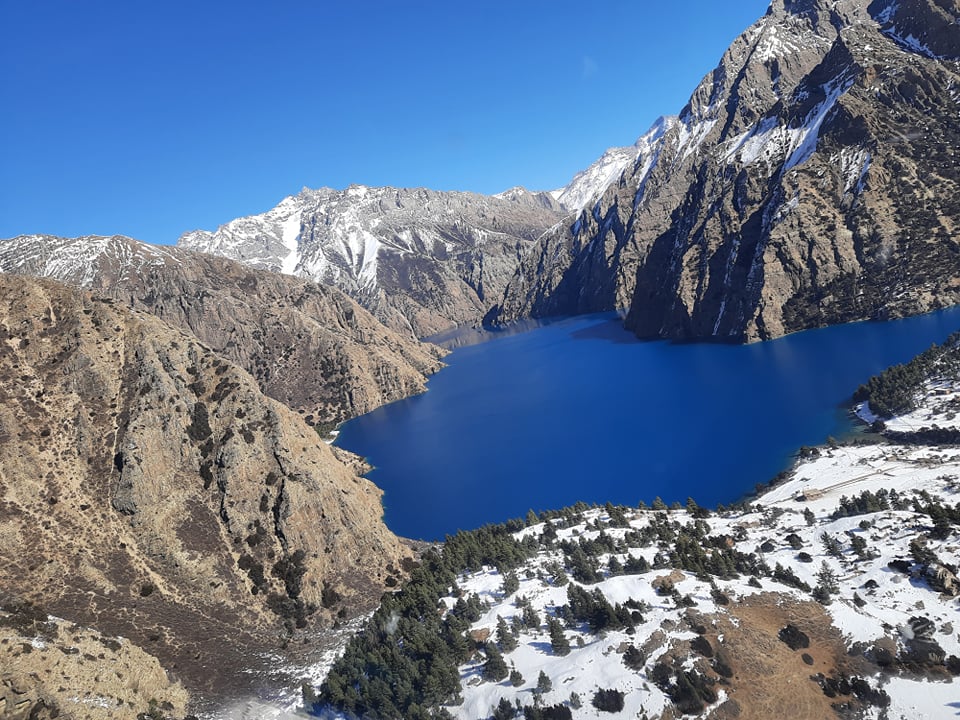 डोल्पा ः मौसम खुलेसँगै सधैं रंग फेर्ने ताल भनेर चिनिने शे फोक्सुण्डो ताल निकै गम्भिर देखिएको छ । निलो देखिएको तालको छेउ, छाउँमा हिउँले सेताम्य भएको छ ।