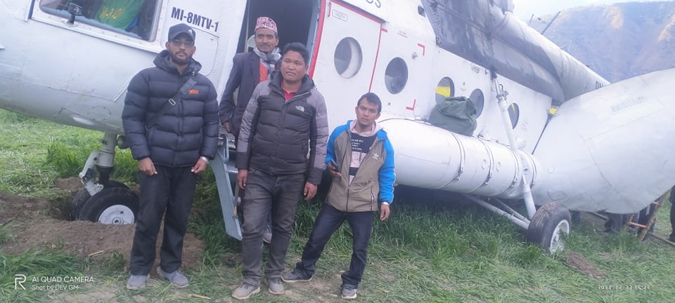 हेलिकोप्टरबाट डोजर ढुवानी गरि सिस्ने हिमालको काखमा सडक