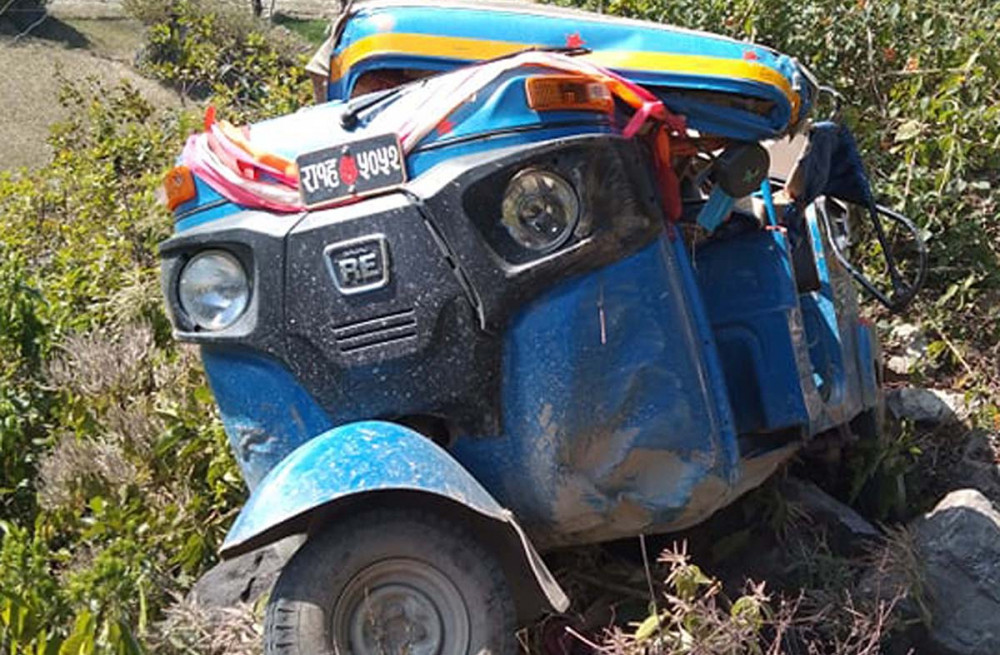 सल्यान ः त्रिवेणी गाउँपालिकाको केन्द्र लुहामबाट टुनिबोट जाँदै गरेको रा १ ह ५०५२ नम्बरको अटो शनिबार दिउँसो दुर्घटना हुँदा चालकको मृत्यु भएको छ । दुर्घटनामा त्रिवेणी गाउँपालिका ५ मुलाबारीका ४४ वर्षीय टेकबहादुर बिकको मृत्यु भएको हो ।