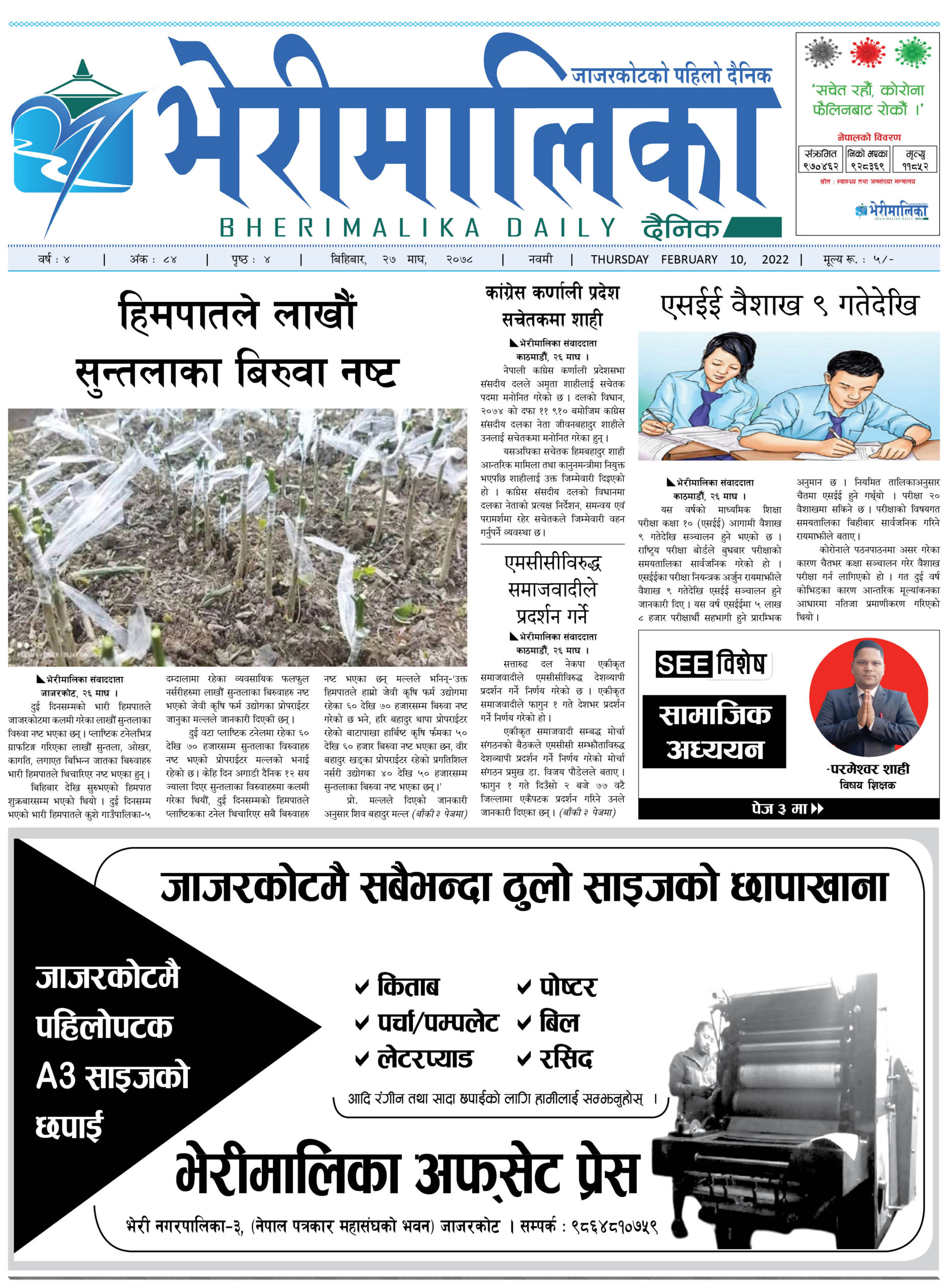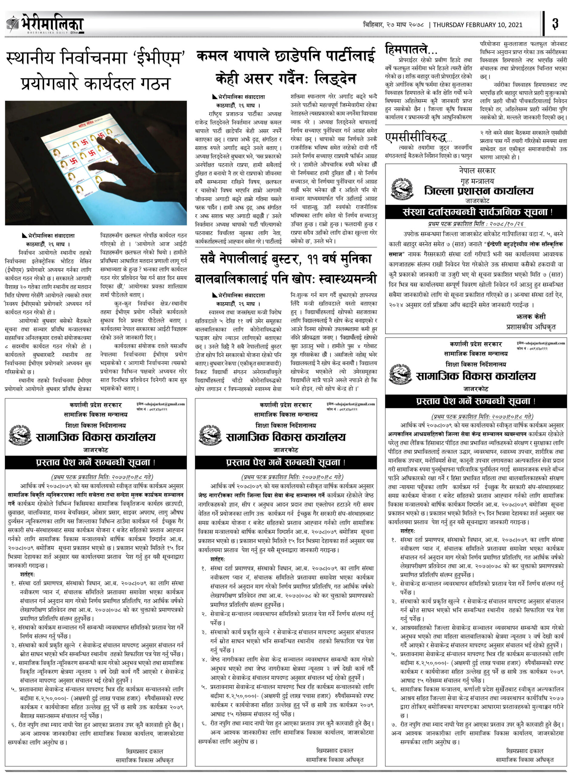 भेरीमालिका दैनिकमा आज के छापियो ? नेपालपोष्ट खबर । २७ माघ २०७८, बिहीबार ०८:०४ मा प्रकाशित Share this: Share on X (Opens in new window) X Share on Facebook (Opens in new window) Facebook