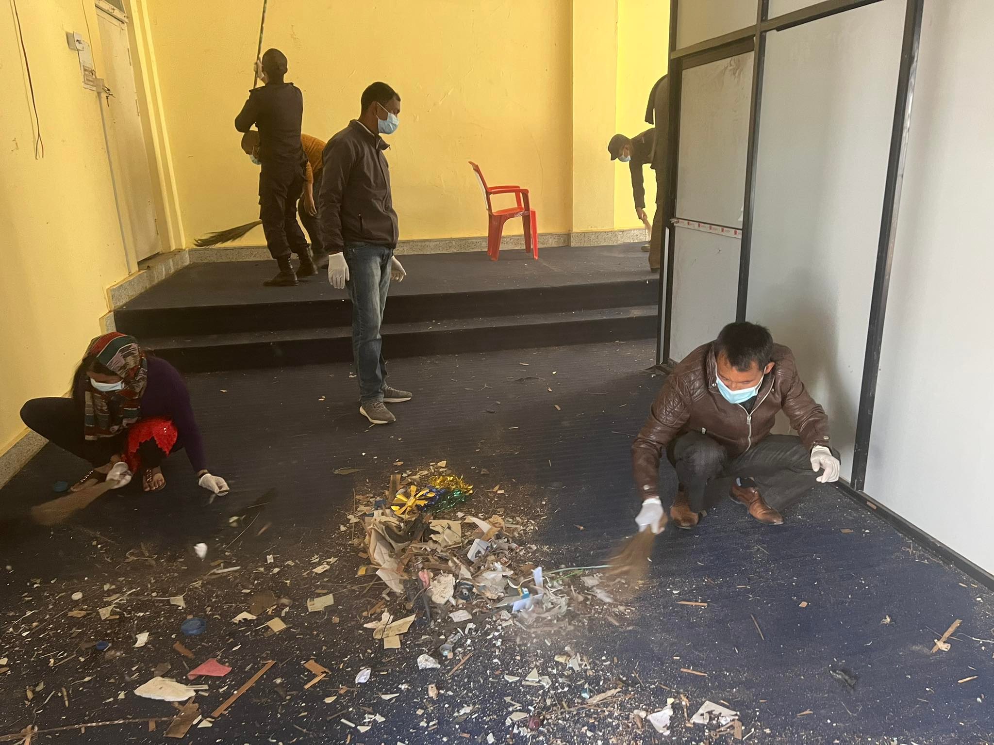 मन्त्री गणेसप्रसाद सिंह आज शनिबार कार्यालयमा आएर सरसफाइको काम गर्दै