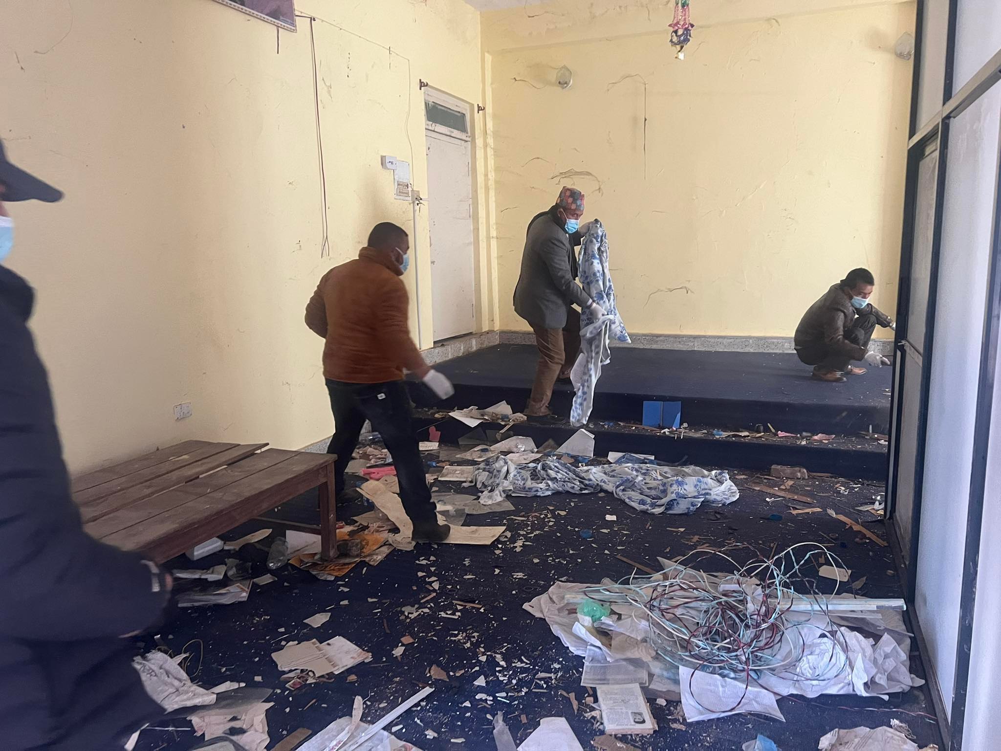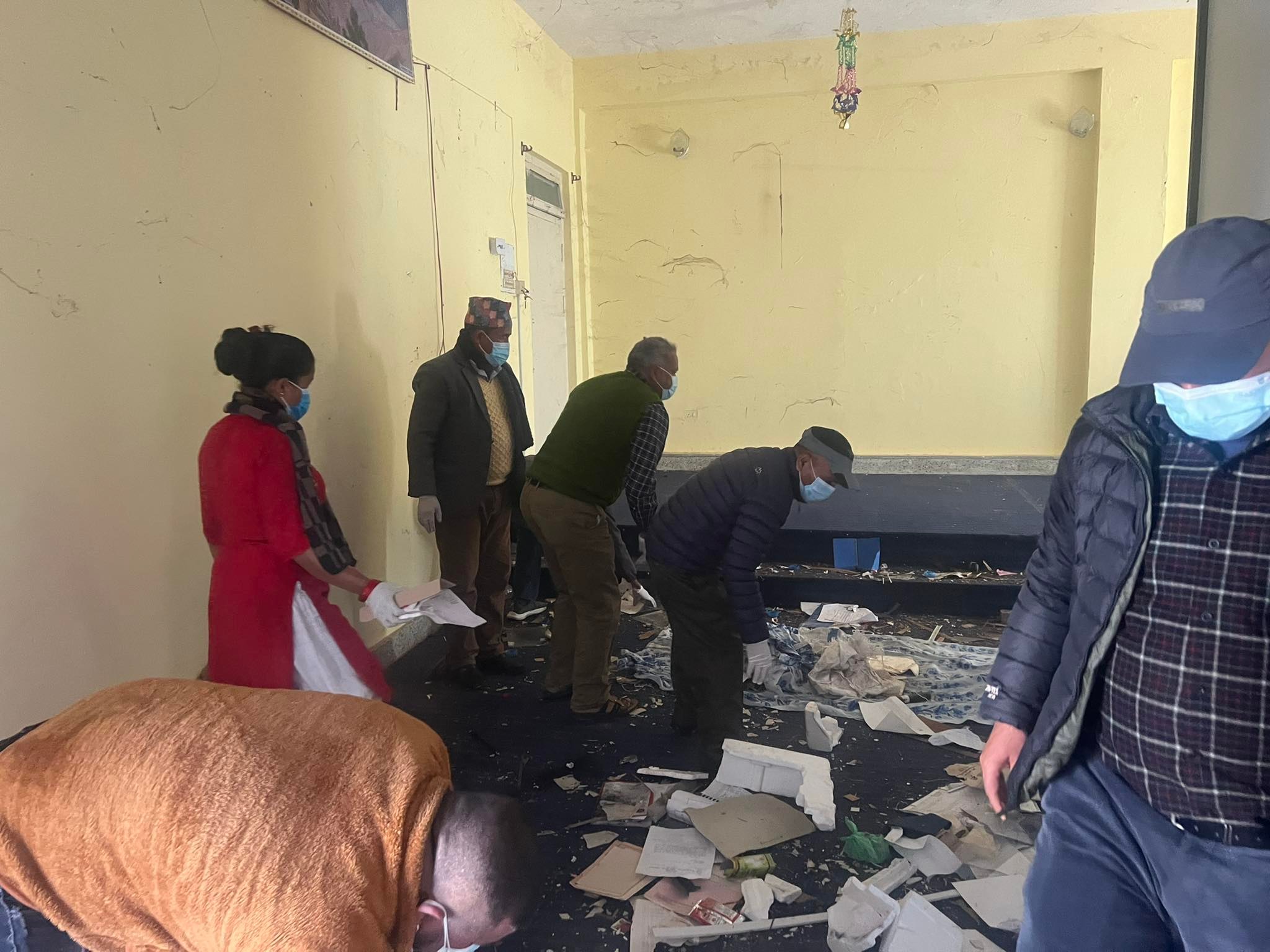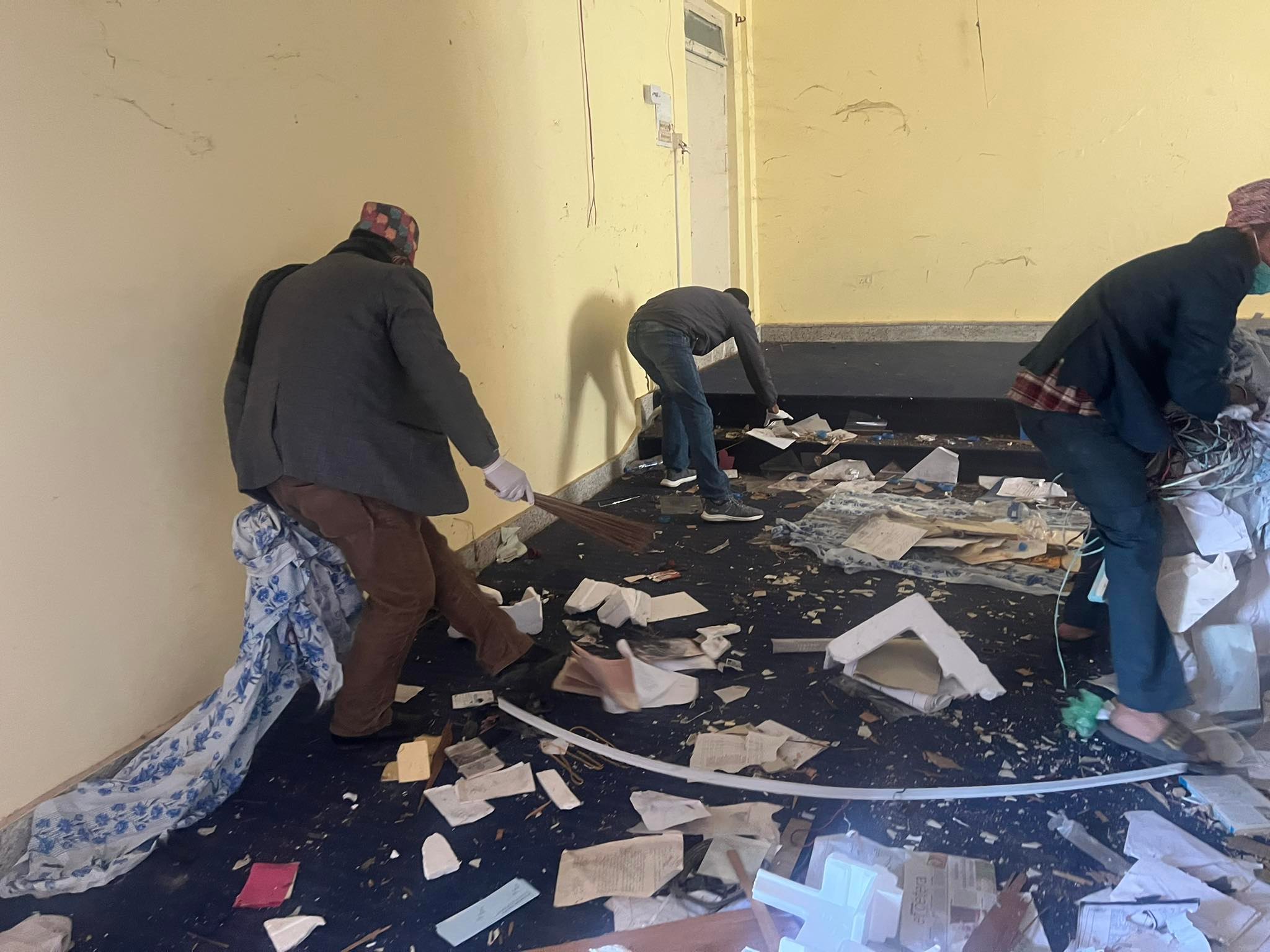 सुर्खेत , २९ माघ ः कर्णाली प्रदेश जलस्रोत तथा उर्जा विकास मन्त्री गणेसप्रसाद सिंह आज शनिबार कार्यालयमा आएर सरसफाइको काम गर्दै । मन्त्री सिंहले ६ घण्टा कार्यालयको सरसफाइको काम गर्नुभएको छ । तस्वीर हेमन्त केसी