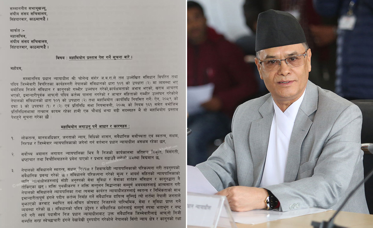 प्रधानन्यायाधीश चोलेन्द्र शमशेर जबराविरुद्ध महाअभियोग प्रस्ताव दर्ता गर्नेहरूमा तीनजना प्रस्तावक र ९५ समर्थक गरी ९८ सांसद छन् । महाअभियोगमा हस्ताक्षर गर्ने काँग्रेस, माओवादी र एकीकृत समाजवादी ९८ सांसदको नामावली रातोपाटीले प्राप्त गरेको छ ।